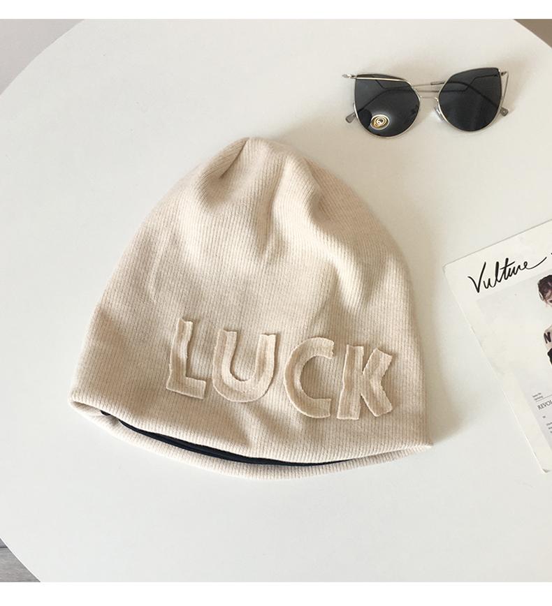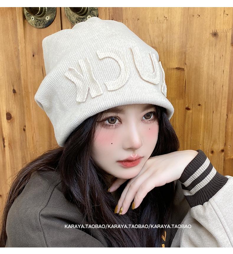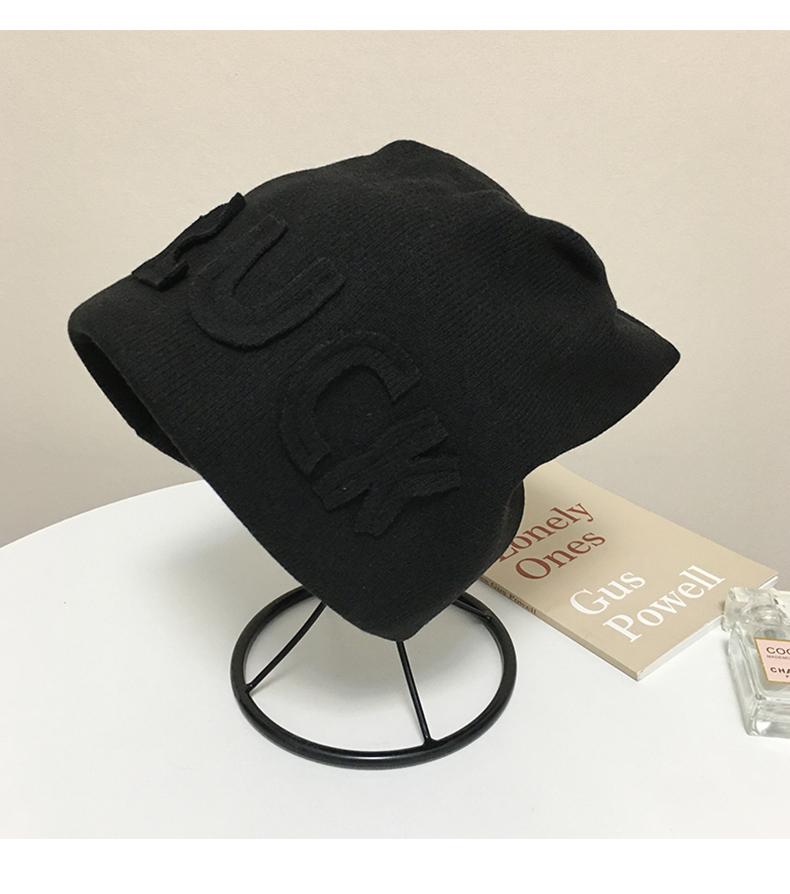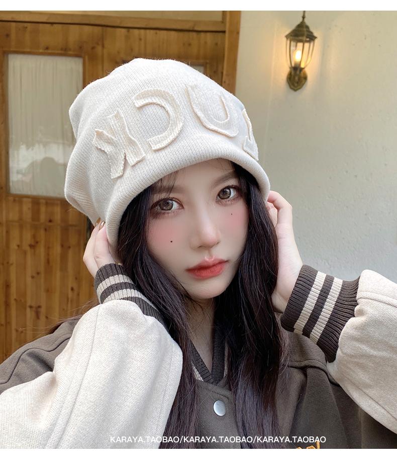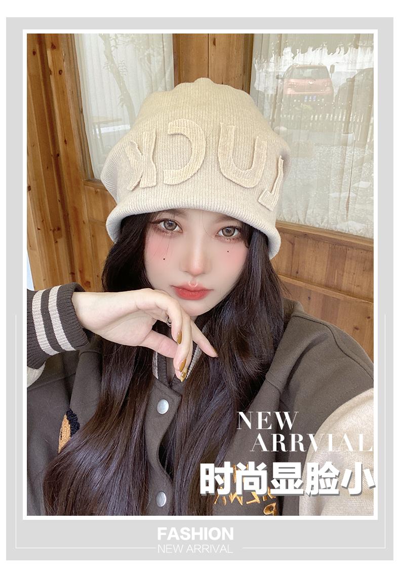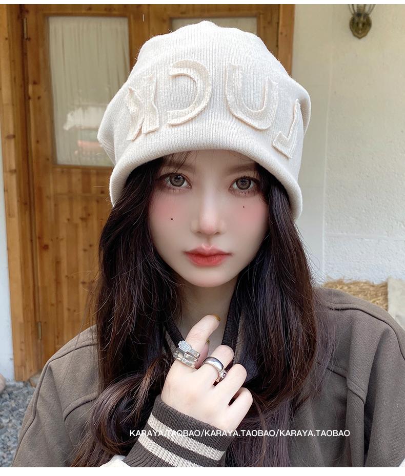 Internet Celebrity Face Pequeno ins Chapéu Feminino All-match LUCK Toe Malha Chapéu de Lã Estilo Coreano Chapéu Frio Moda Cool Heap Chapéu