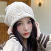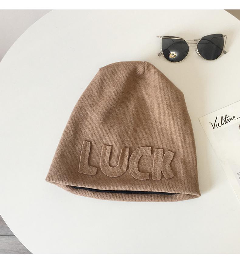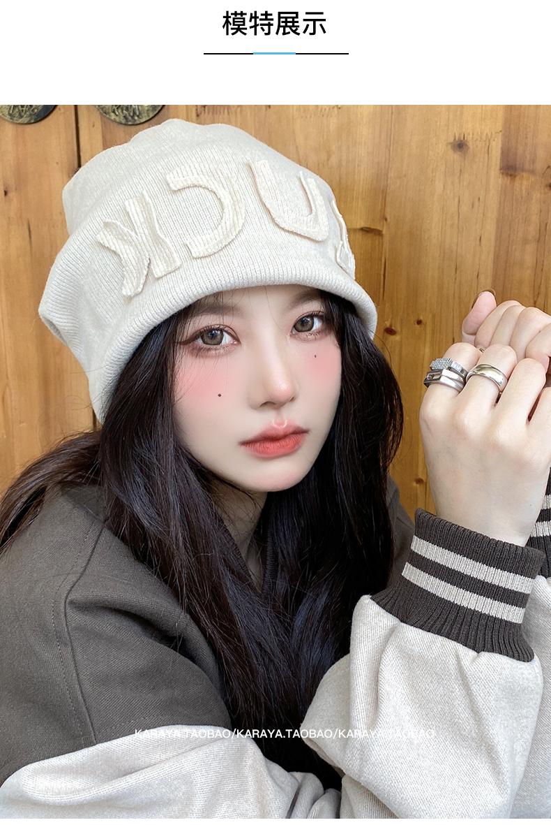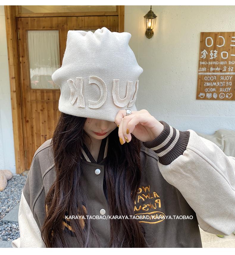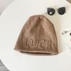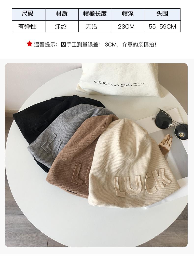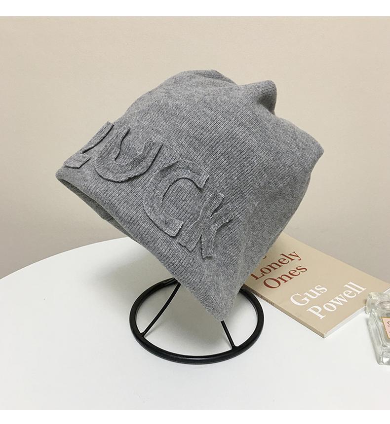 Internet Celebrity Face Pequeno ins Chapéu Feminino All-match LUCK Toe Malha Chapéu de Lã Estilo Coreano Chapéu Frio Moda Cool Heap Chapéu