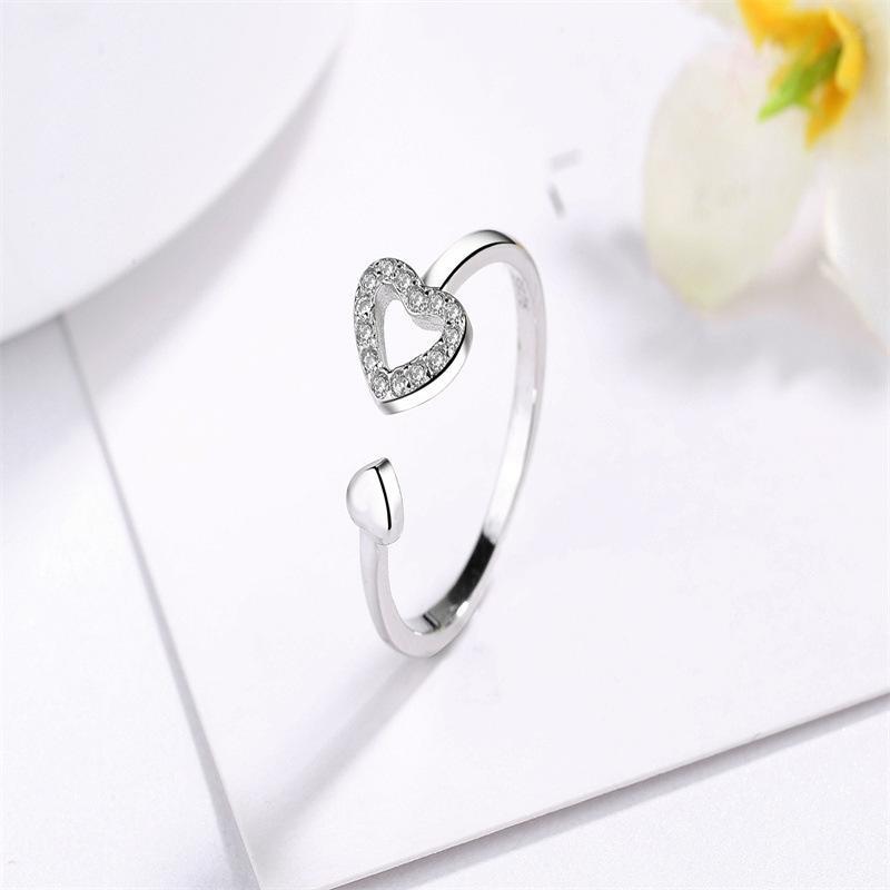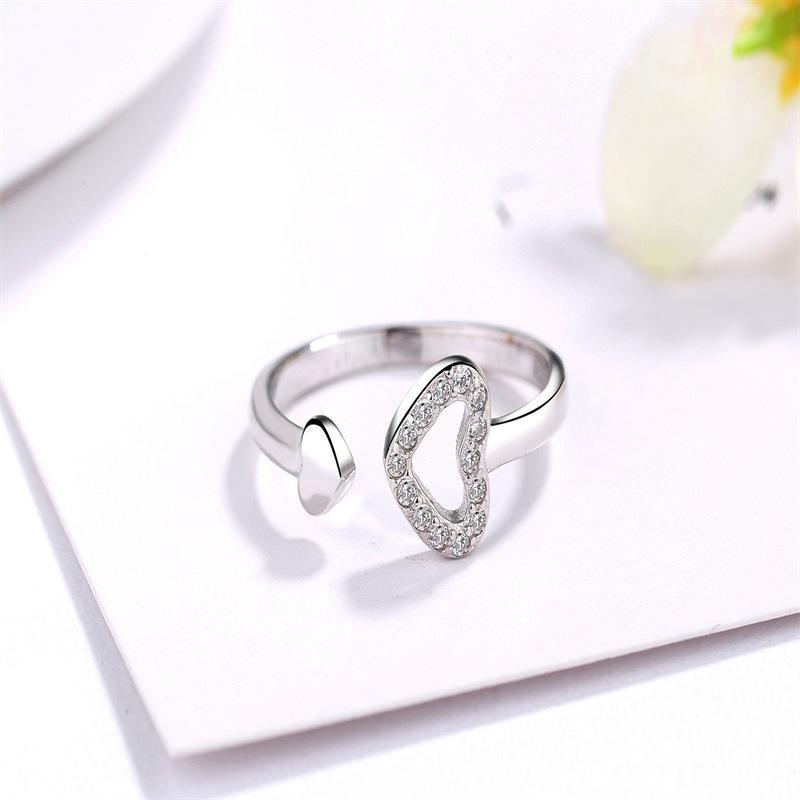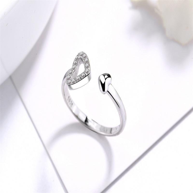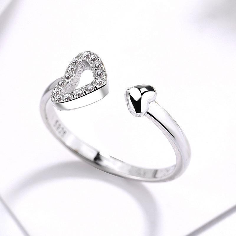 Anel duplo vazado de amor da moda coreana 2022 Anel de abertura de diamante feminino Anel em forma de coração Atacado de fabricantes