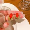 S925 anti-prata agulha vintage estilo palácio requintado folha orelha pregos luz luxo transparente chinês vermelho oval brincos de gema para as mulheres