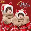 Chapéu adulto inverno cachecol feminino integrado cachecol bonito luvas conjunto de três peças chifre quente chapéu de pelúcia