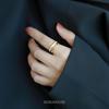Anel de camada dupla com linhas geométricas para mulheres, simples, vento frio, irregular, prata S925, anel dividido, hip hop, anel de dedo, maré