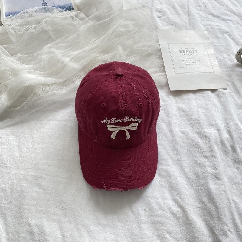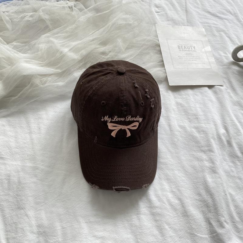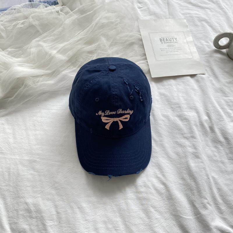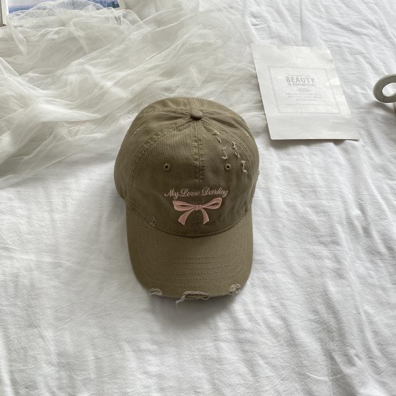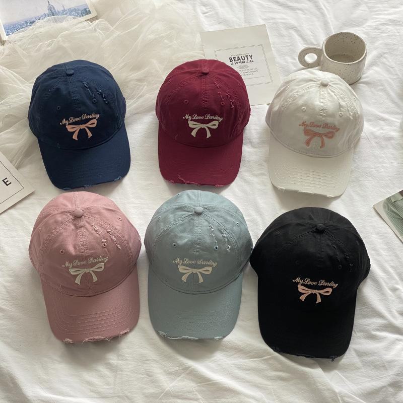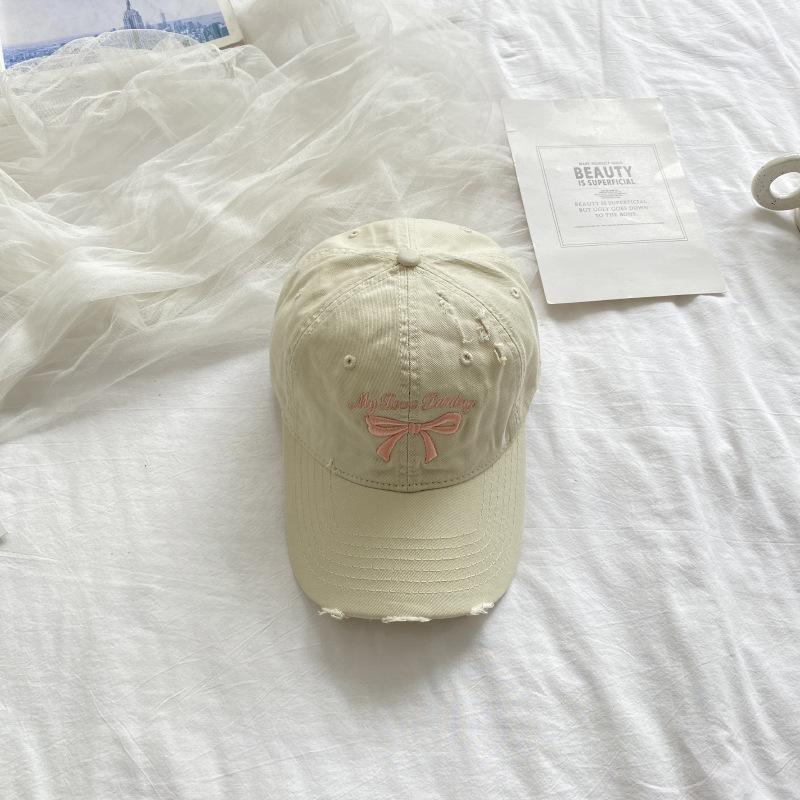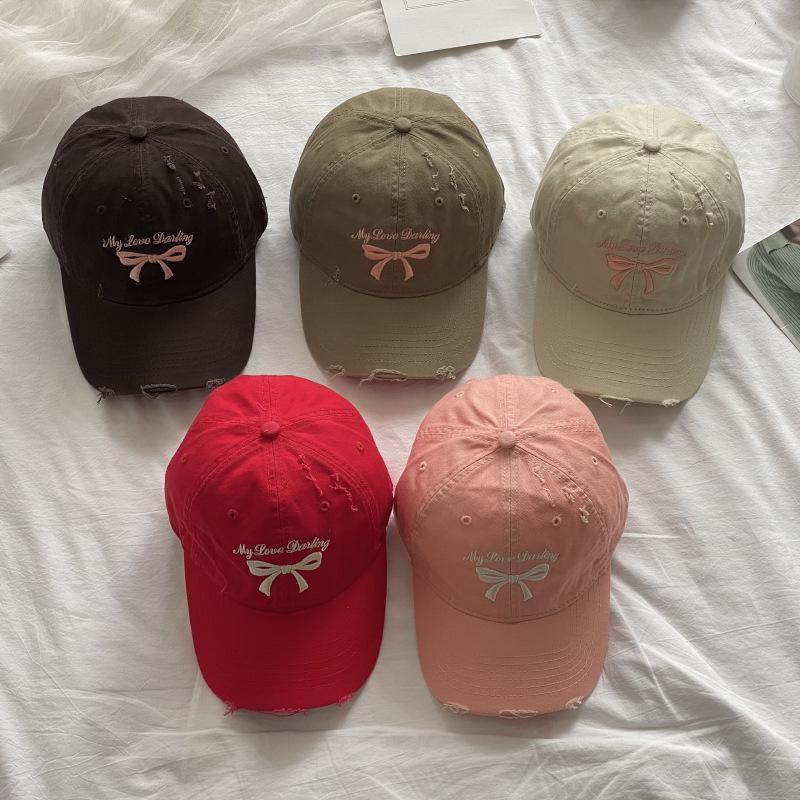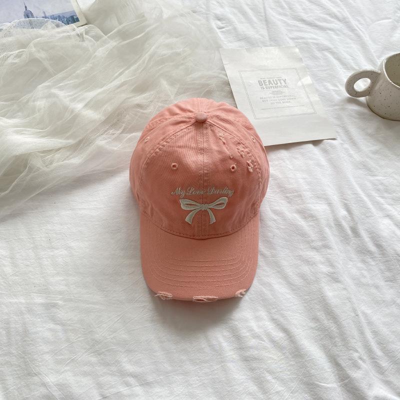 2024 Estilo Coreano Ins Estilo Retro Bow Boné de Beisebol Feminino Primavera e Verão Guarda-sol Cap Soft Top All-match Trendy
