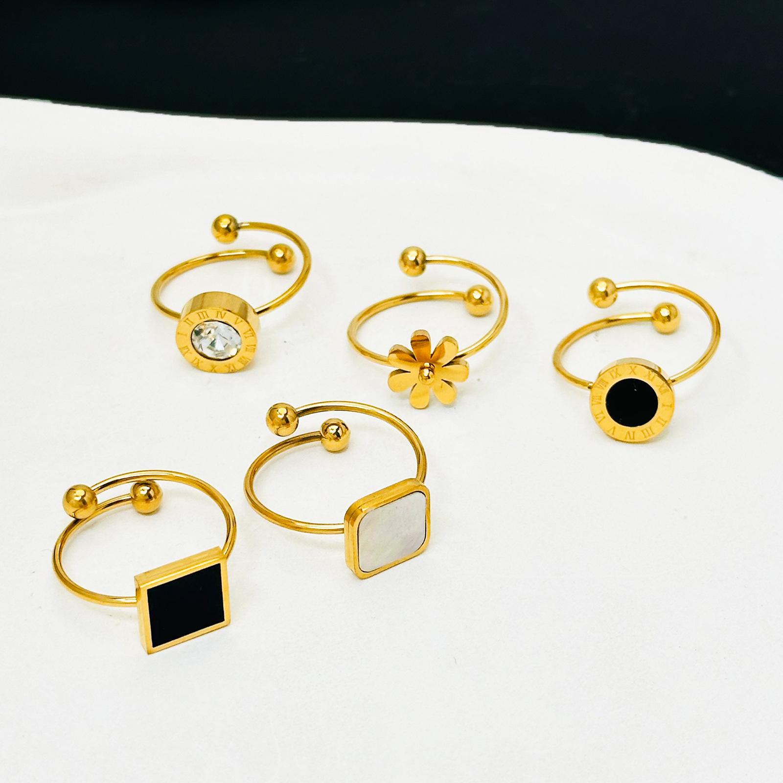 Abertura Ajustável Novo Francês Romano Margarida Preta Anel de Aço Titânio Sem Cor Pequeno Anel Feminino Pequeno