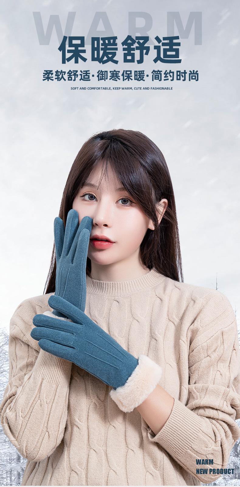 Luvas quentes de inverno luvas femininas de camurça ao ar livre luvas de tela sensível ao toque quentes forradas de lã a01