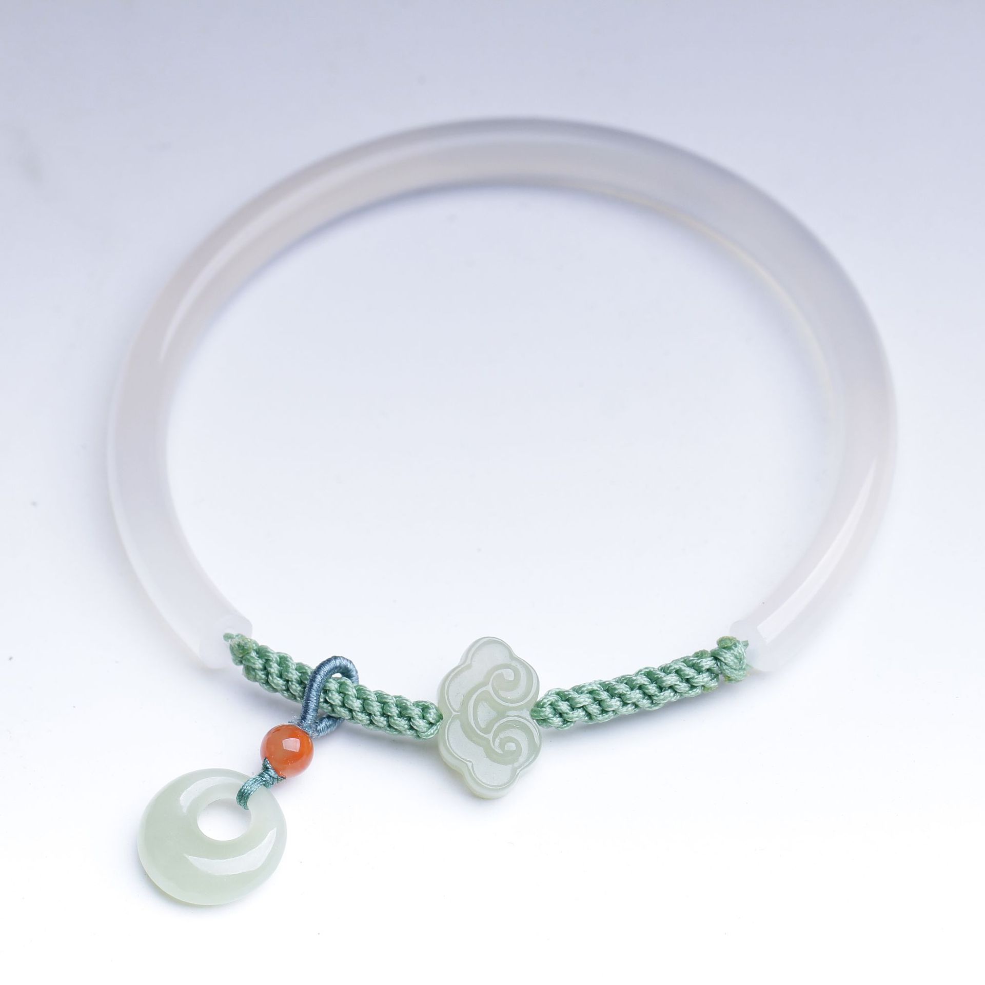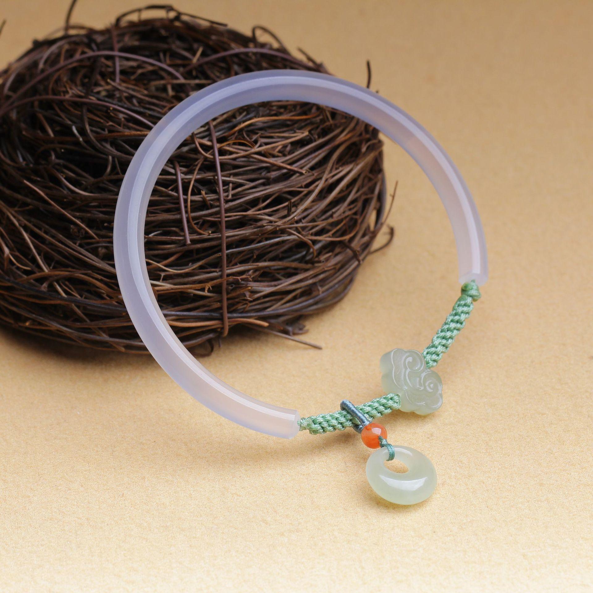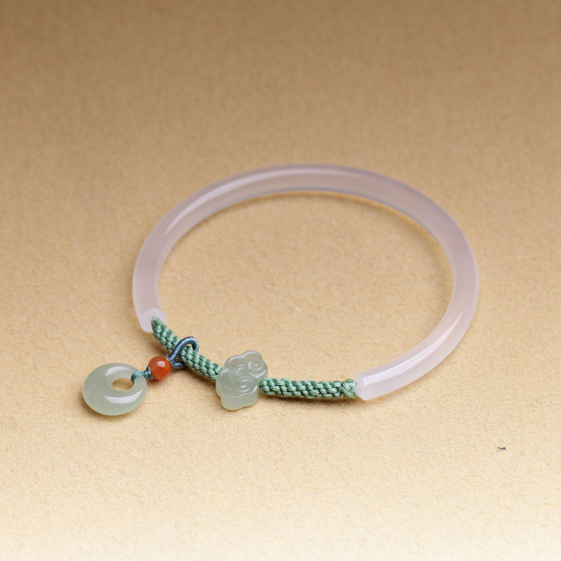 Pulseira de ágata branca natural com jade Hetian Xiangyun Ruyi fivela de princesa meia pulseira presente para amigas joia