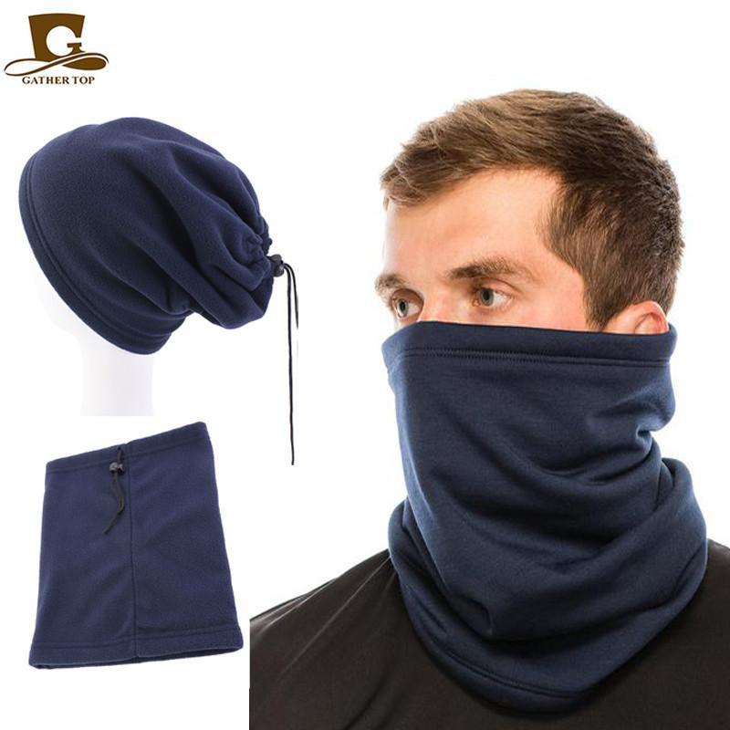 Esportes ao ar livre gola de lã polar de camada dupla com cordão lenço ajustável multifuncional à prova de frio máscara chapéu