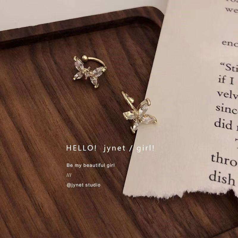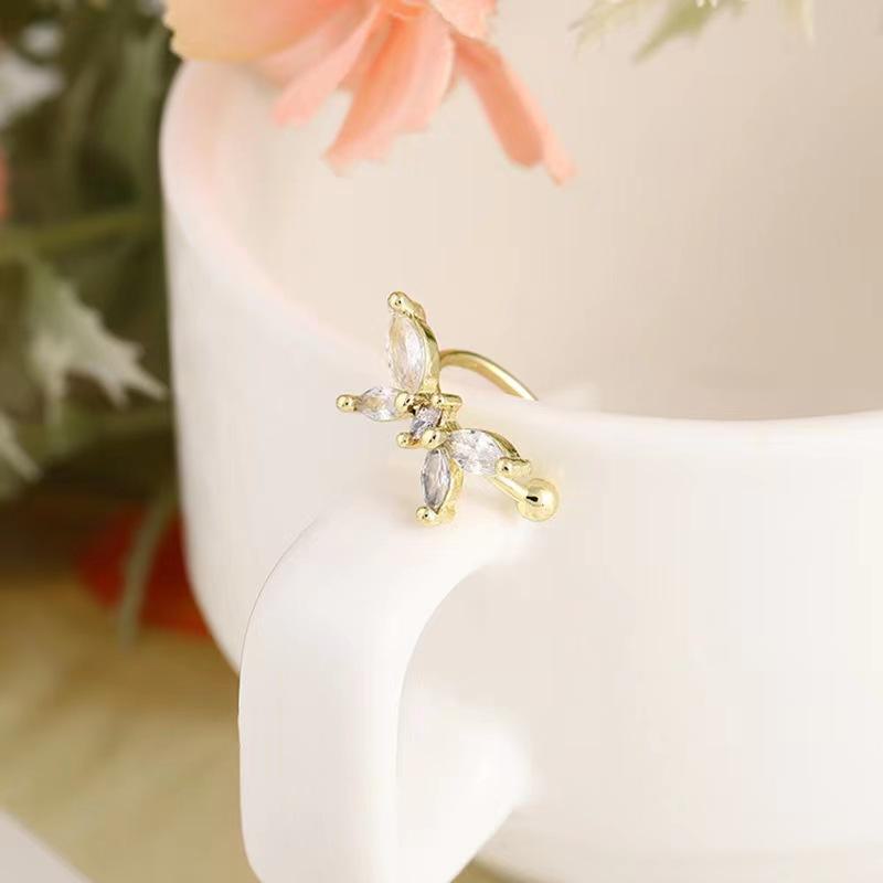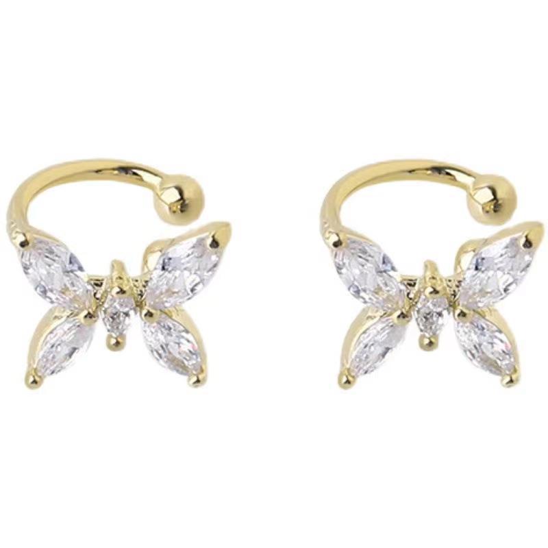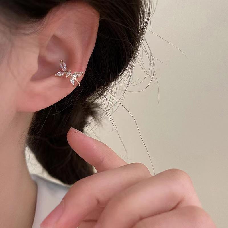 Brincos sem orelha elegantes e requintados de personalidade luxuosa e leve com micro zircônia incrustada e clipe de osso de orelha de borboleta