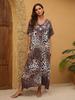 Xale de proteção solar feminino de verão, estampa de leopardo, imitação de seda, xale, georgette, botão de pérola