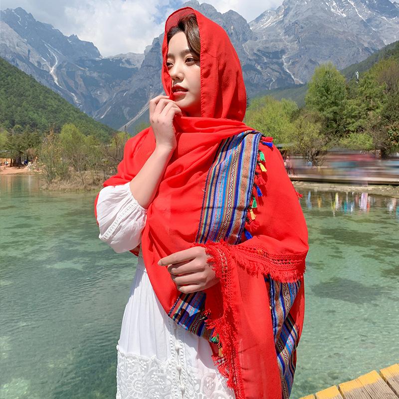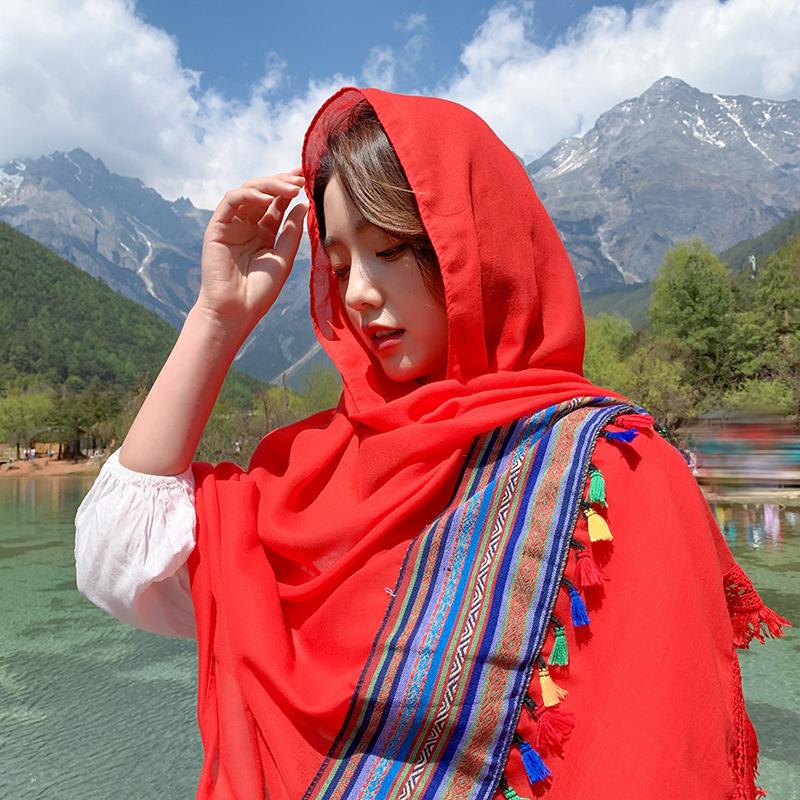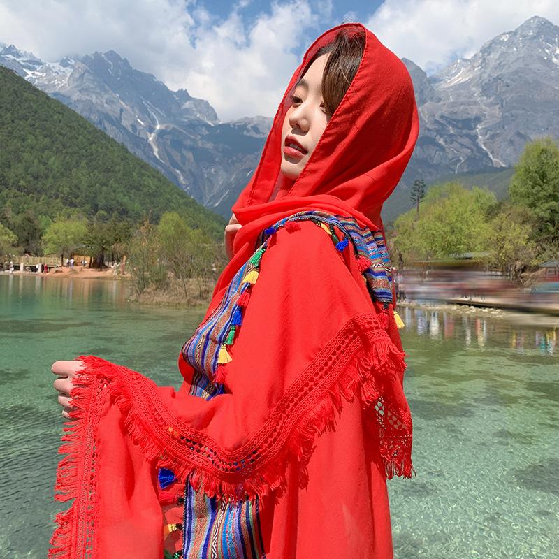 Também é uma boa escolha trazer um lindo lenço de seda e tirar fotos casualmente