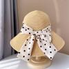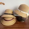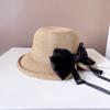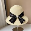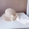 Estilo japonês Bead Chain Bow Ribbon Fisherman Chapéu de palha Verão Elegante para todos os jogos Chapéu de Bacia de Guarda-sol Férias Praia Chapéu Moda