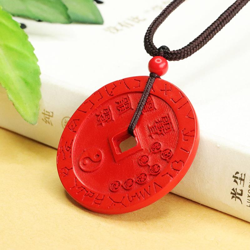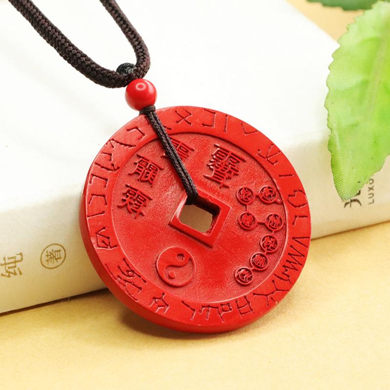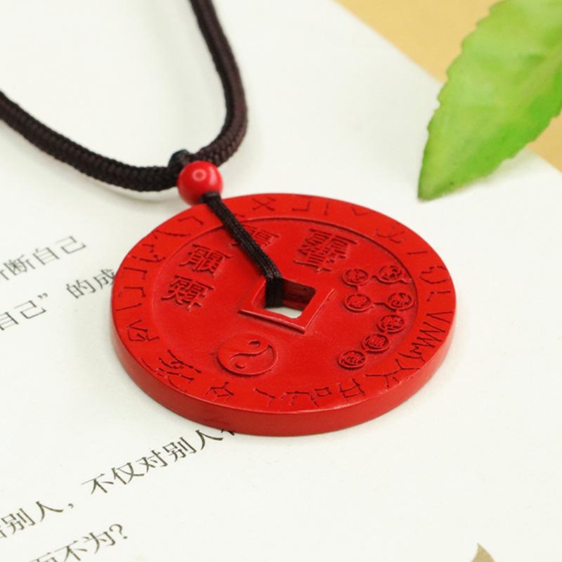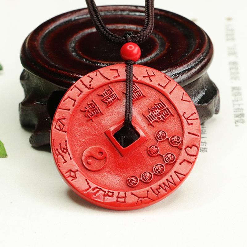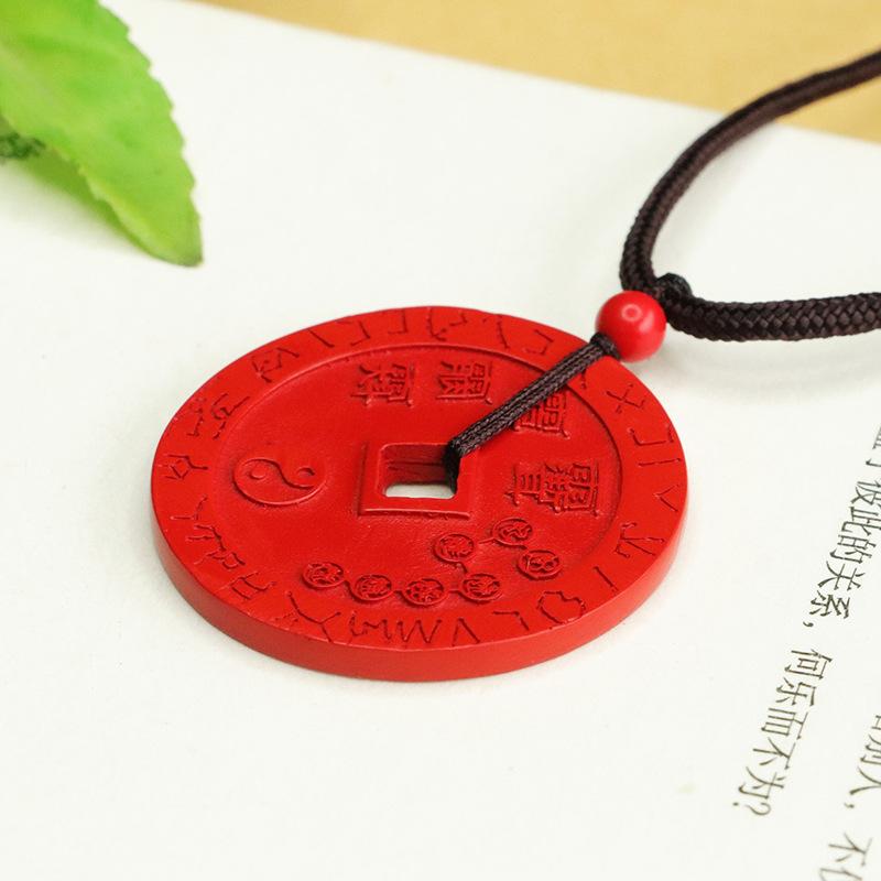 Aiyu cinábrio pingente de areia vermelha cinco Lei moeda pingente cinábrio colar fábrica entrega por atacado AY4022304
