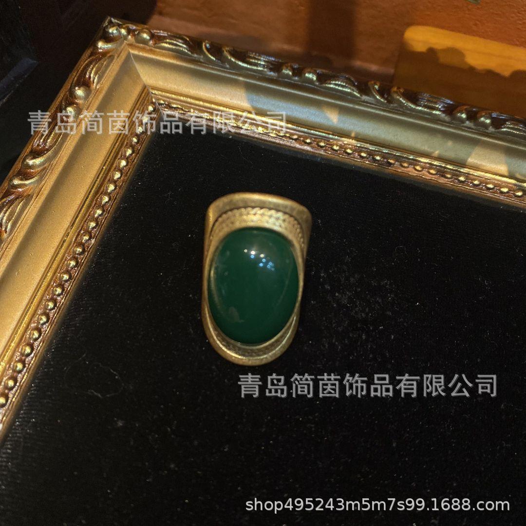 Pedra Principal de Ágata Verde Oval Incrustada de Ouro Antigo Ocidental Médio Antigo Banhado a Cobre Antigo 10