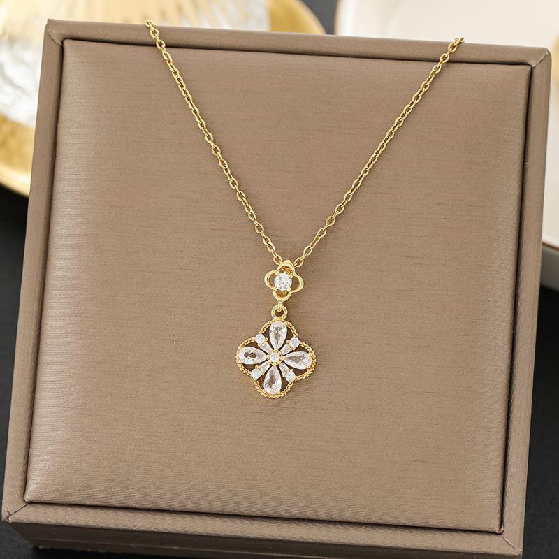 Estilo coreano nicho design colar de aço titânio das mulheres elegante simples trevo pingente clavícula cadeia geométrica colar jóias