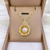 [Aço Titânio] Pavão Abrindo Pérola Temperamento Luxo Leve Colar Deslumbrante Diamante Completo Corrente Clavícula Mais Fácil de Combinar Corrente Aço Titânio