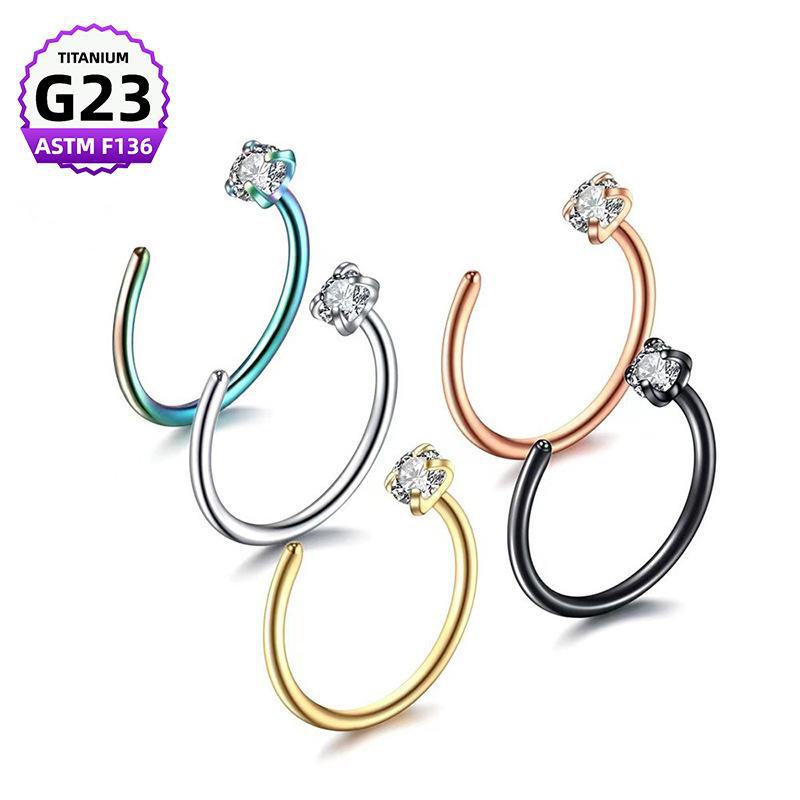 F136 titânio nariz unha garra zircão C anel G23 liga de titânio piercing corporal jóias nariz anel nariz