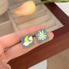 S925 Agulha de Prata Elegante Lua Nova Flor Orelha Stud Brincos Assimétricos Distintivos Simples Quadrado Orelha Clipe Brincos Femininos