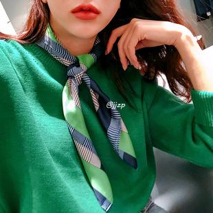Coreano quadrado cachecol cachecol feminino retro ins listrado primavera e outono feminino azul versátil decorativo pequeno cachecol lenço de cabeça