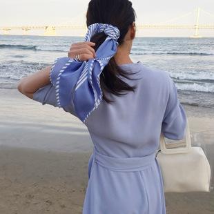 cachecol Coreia Dongdaemun lenço de seda pequeno lenço quadrado listras azuis all-match imitação de seda lenço quadrado 70*70