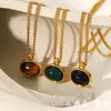 Colar com pingente de pedra natural oval retrô estilo INS europeu e americano, colar de corrente de aço inoxidável banhado a ouro 18K para mulheres