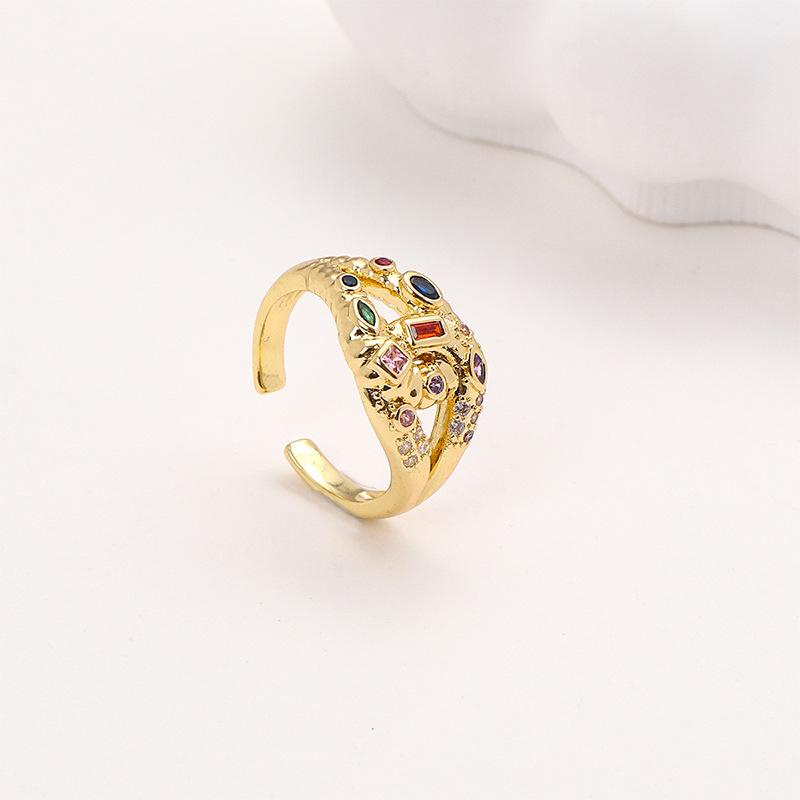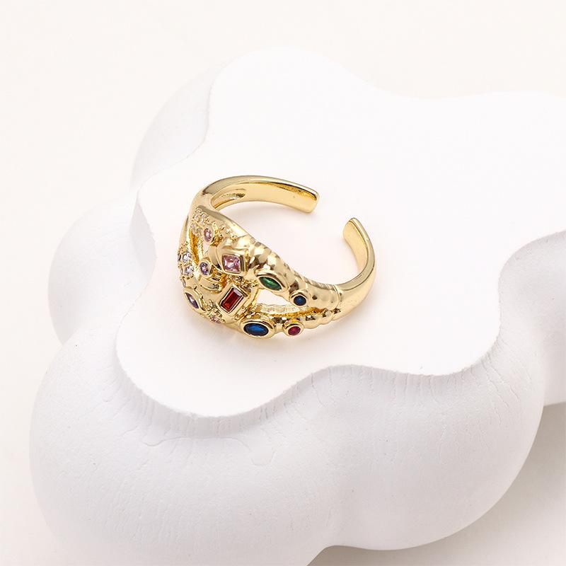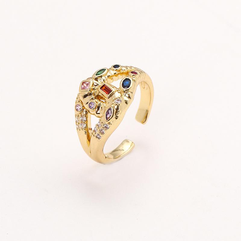 Anel Aberto Popular de Estilo Geométrico Frio Europeu e Americano Joia de Mão Cobre Micro-cravado Zircônia Anel Versátil para Mulheres