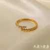 Anel Aberto de Ouro 18K com Incrustações de Contas de Diamantes Brancos Moda Feminina Versátil Anel de Aço Titânio Anel Fino de Aço Inoxidável