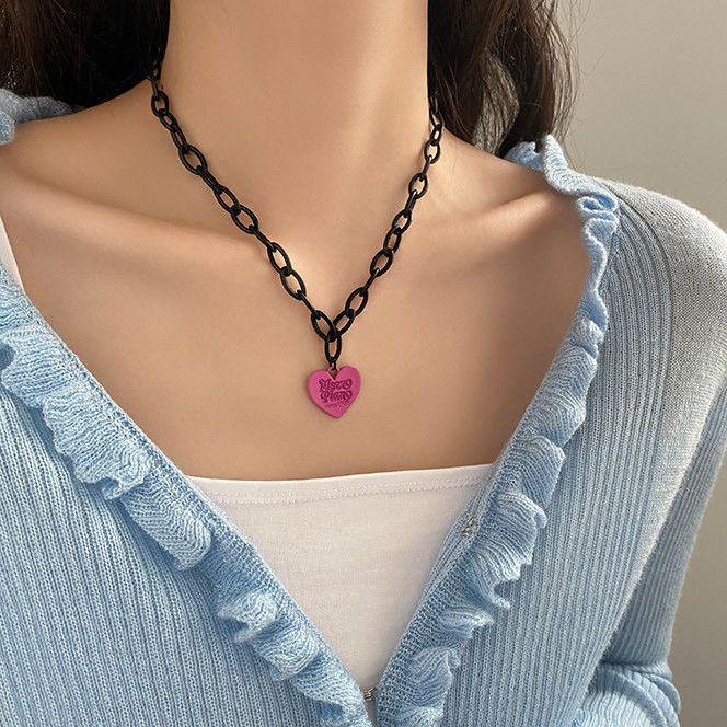 Colar de amor feminino popular online vermelho ins hip hop personalidade design sentido clavícula cadeia 2024 novas namoradas cadeia curta