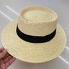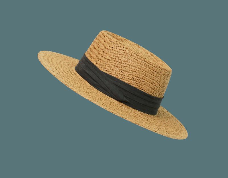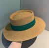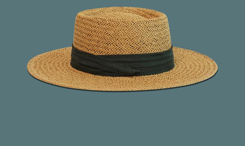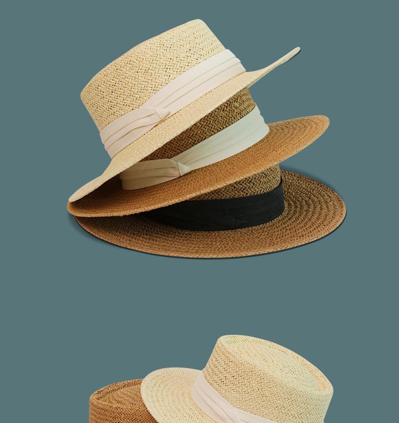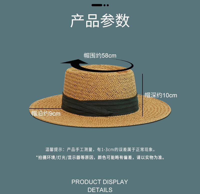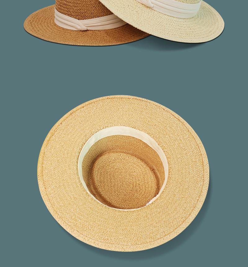 Chapéu de palha Moda Feminina Protetor Solar Chapéu Praia Tecido Chapéu de Sol Verão Chapéu de Aba Grande Feminino Flat Top Chapéu Francês