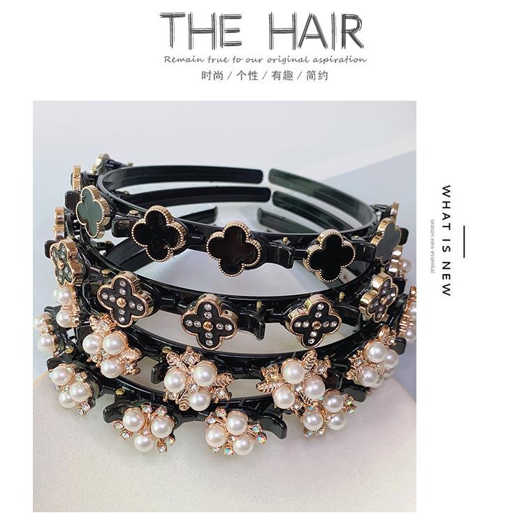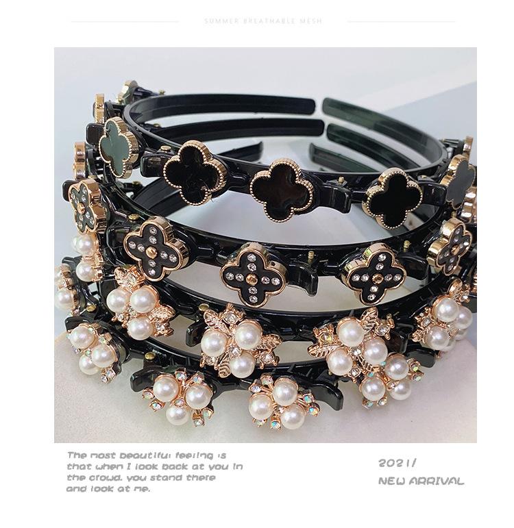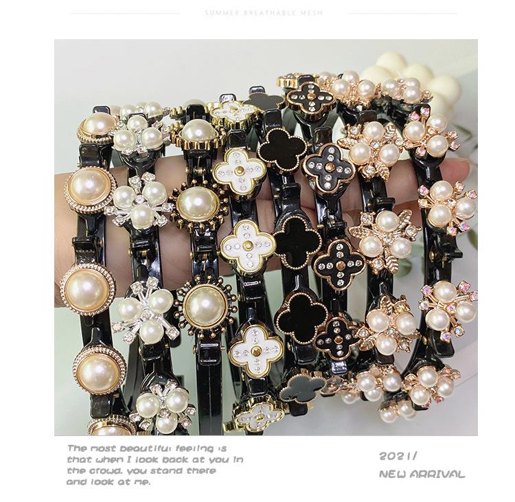 2021 Faixa de Cabelo Preta Preguiçosa para Mulheres com Presilhas de Cabelo de Pérola para Franja e Cabelo Solto, Adequada para Lavar o Rosto e Trançar o Cabelo