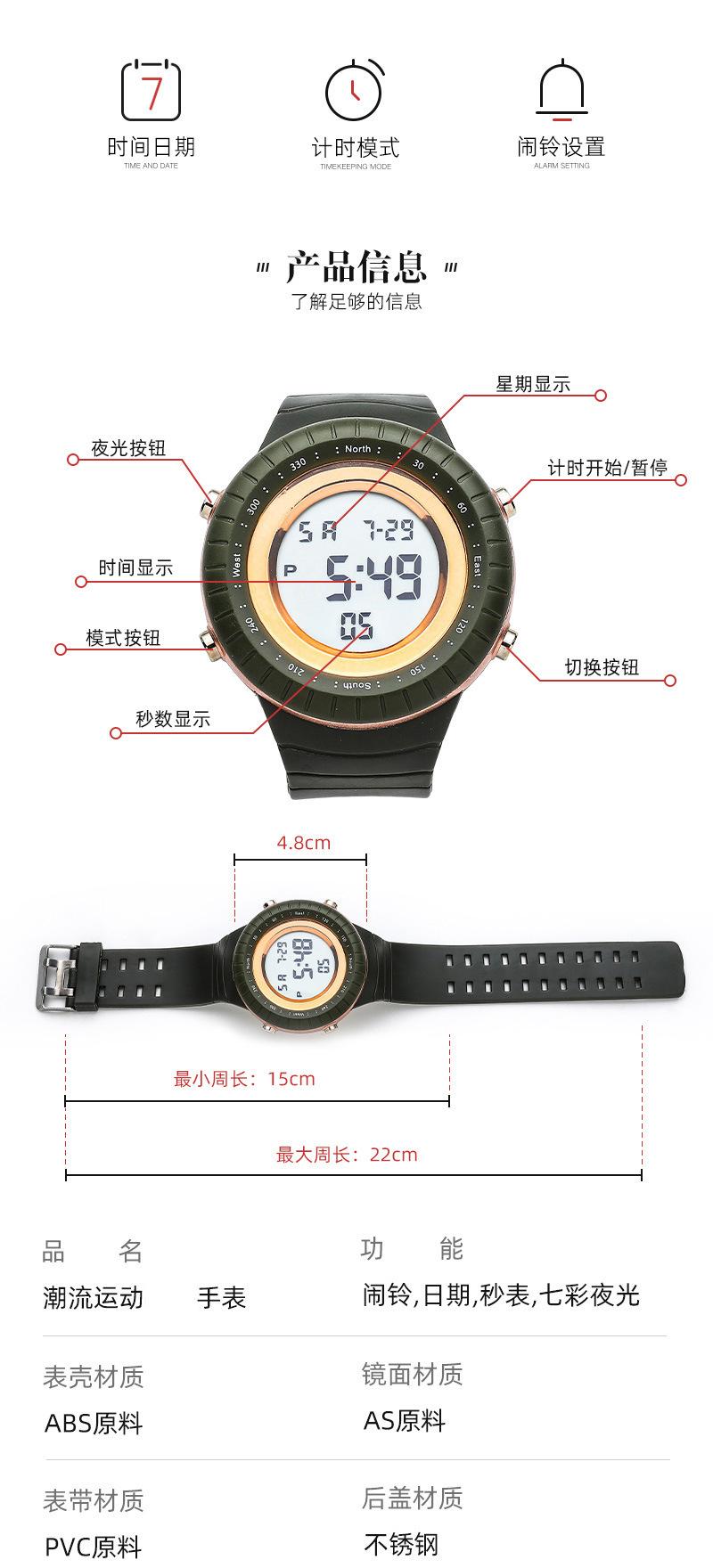 Relógio de Estudante Moda Simples Relógio Eletrônico Redondo Unissex Multifuncional 12 Tendência Relógio Esportivo