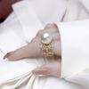 Novo anel de flor de pérola barroca de forma natural de nicho, high-end, anel exagerado aberto banhado a ouro, ajustável