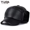 Inverno novo chapéu dos homens moda imitação de couro boné de beisebol quente boné de lazer ao ar livre boné de meia-idade e idosos boné de proteção auricular