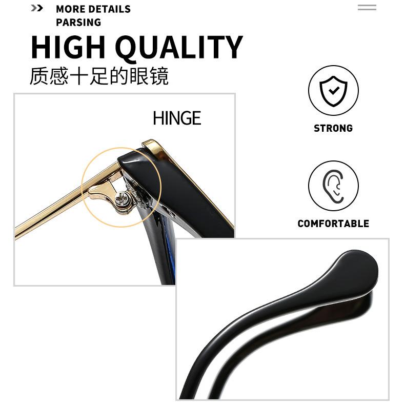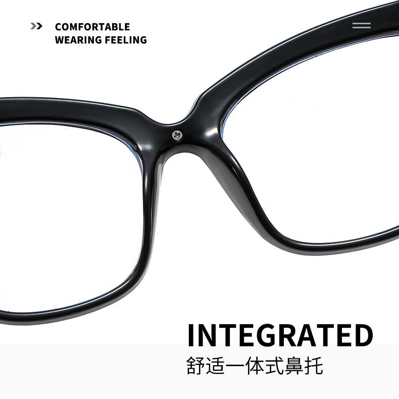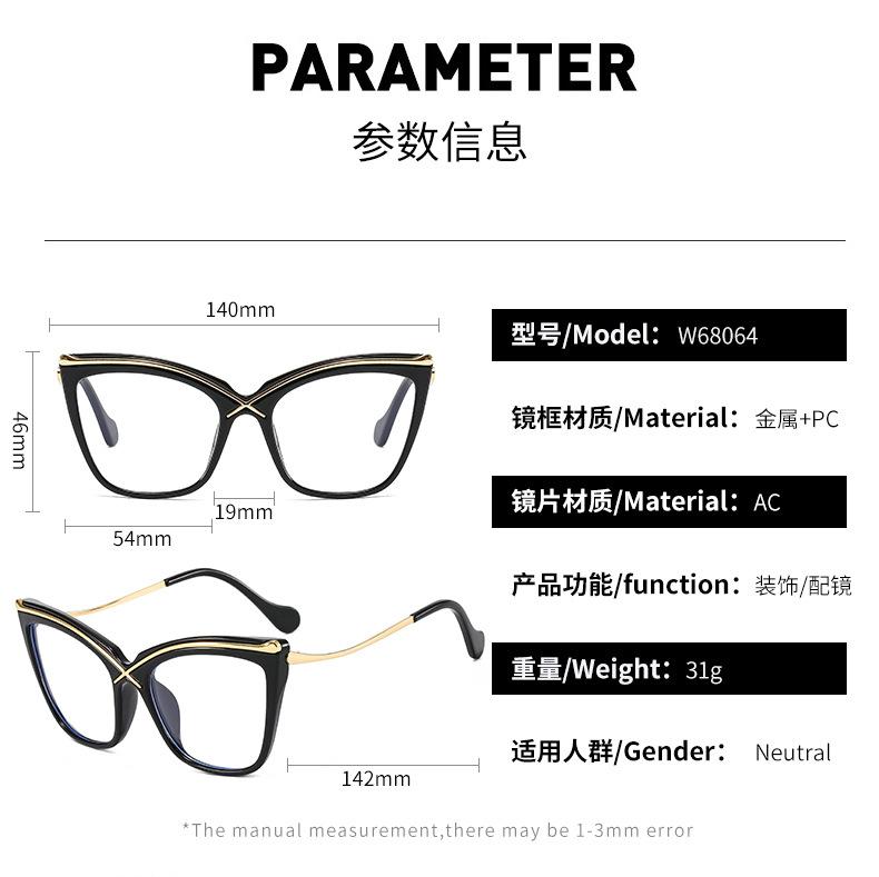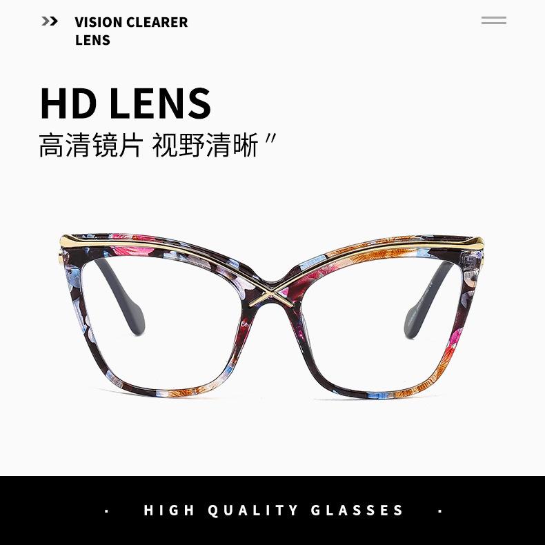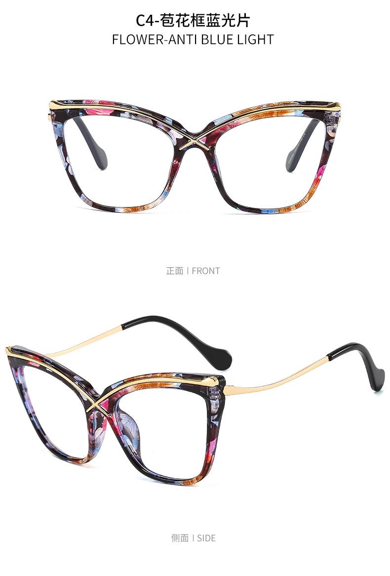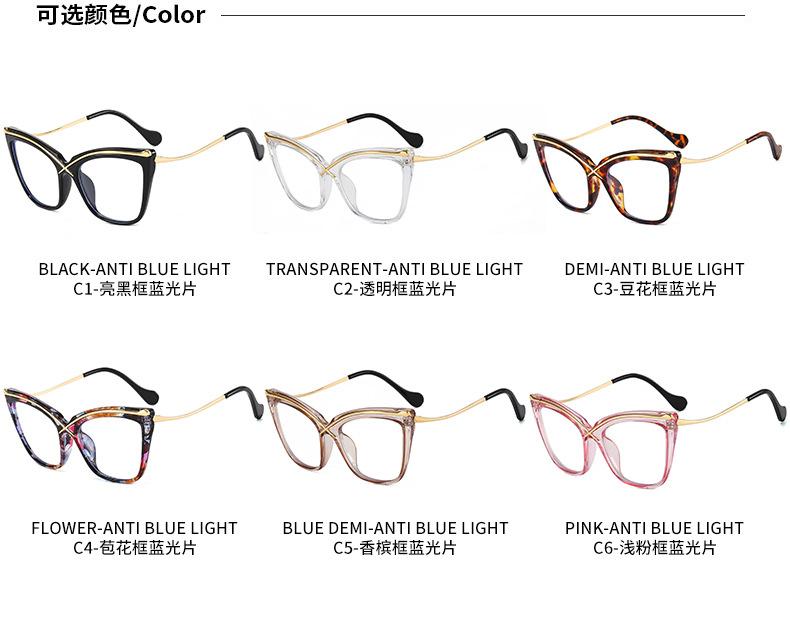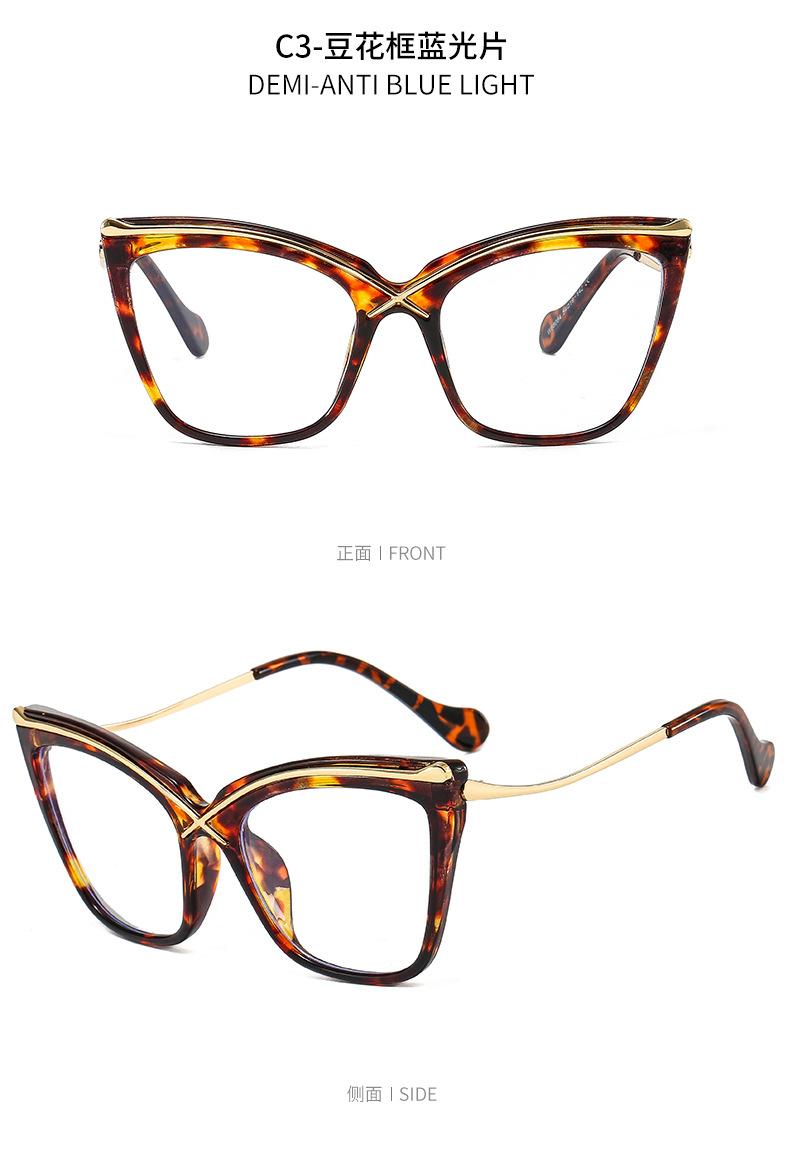 Novo espelho plano de armação grande Cat's Eye metal cruz PC anti-azul óculos de moda combinando espelho óptico europeu e americano
