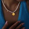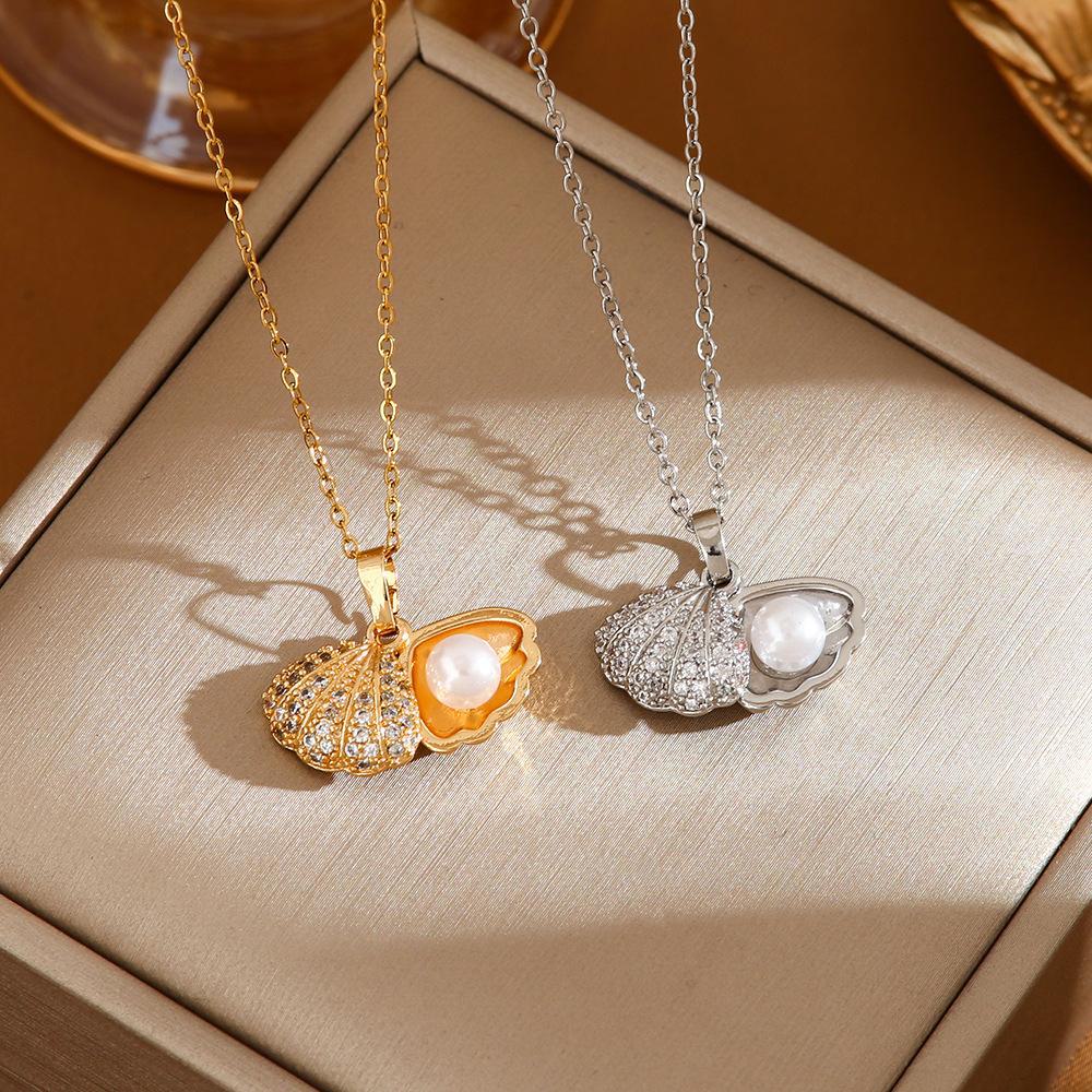 Venda quente ao vivo popular pérola shell diamante pingente estilo frio colar de aço titânio feminino não-desbotamento jóias atacado
