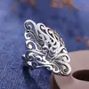 Anel retrô de nuvem auspiciosa feminino temperamento exagerado folhas vazadas anel de dedo de comida personalidade estilo nacional prata tailandesa de imitação anel de abertura