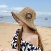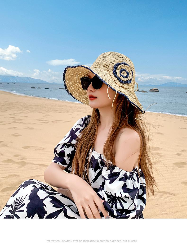 Chapéu de palha elegante para mulheres Verão Sol Chapéu Viagem Protetor solar Praia Pescador Chapéu Feito à mão Dobrável Grande Aro Chapéu de sol