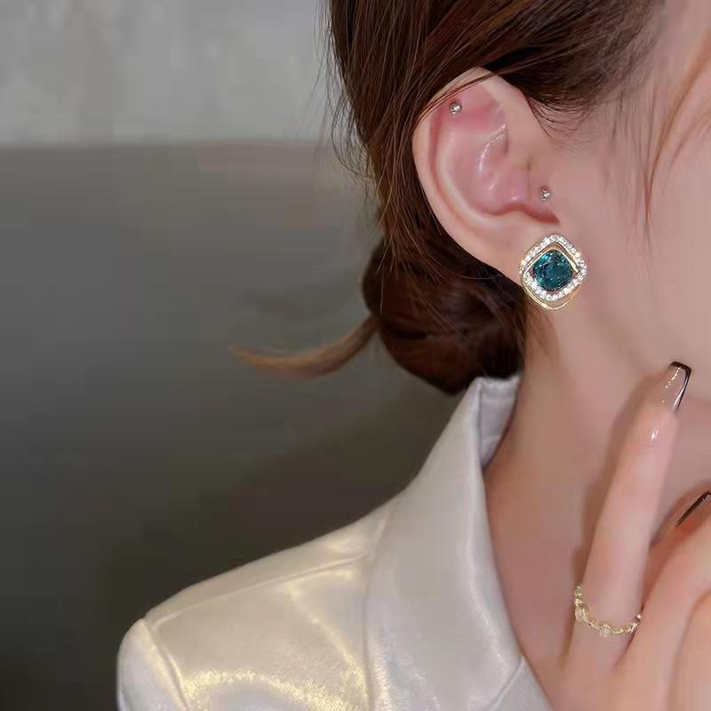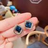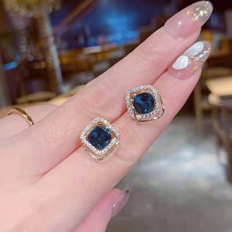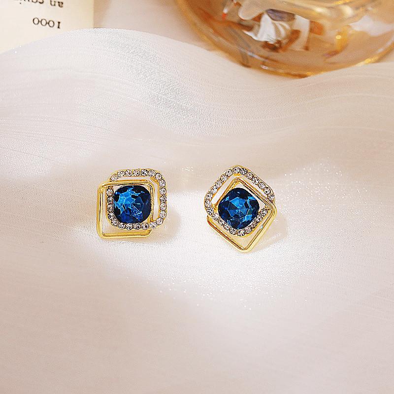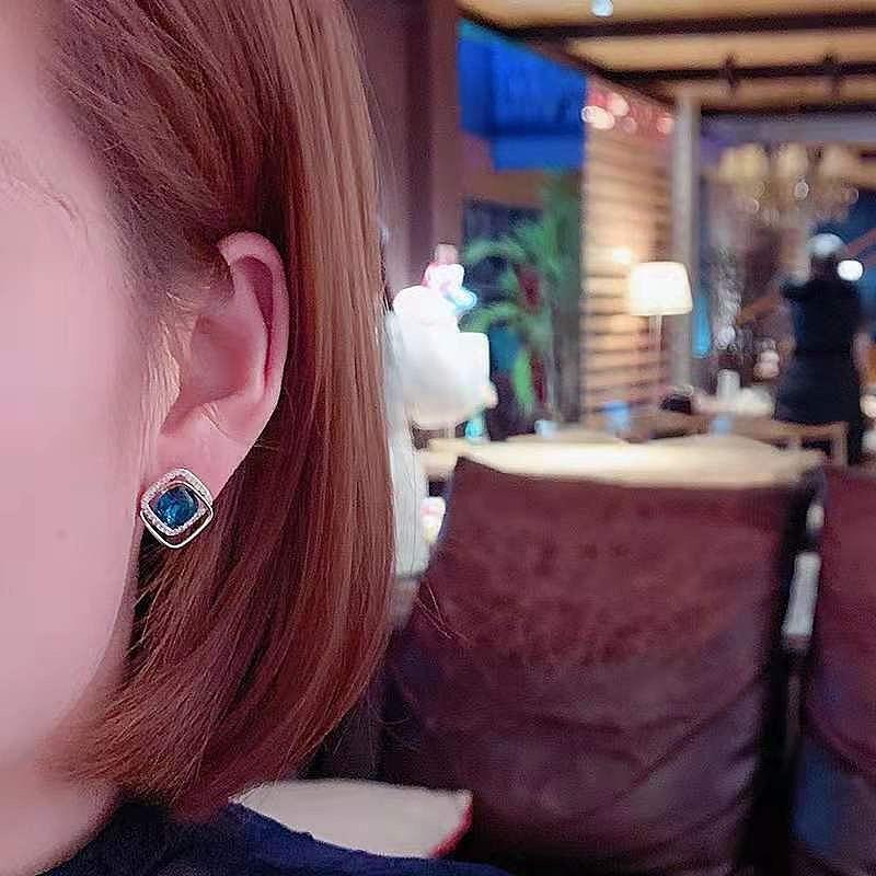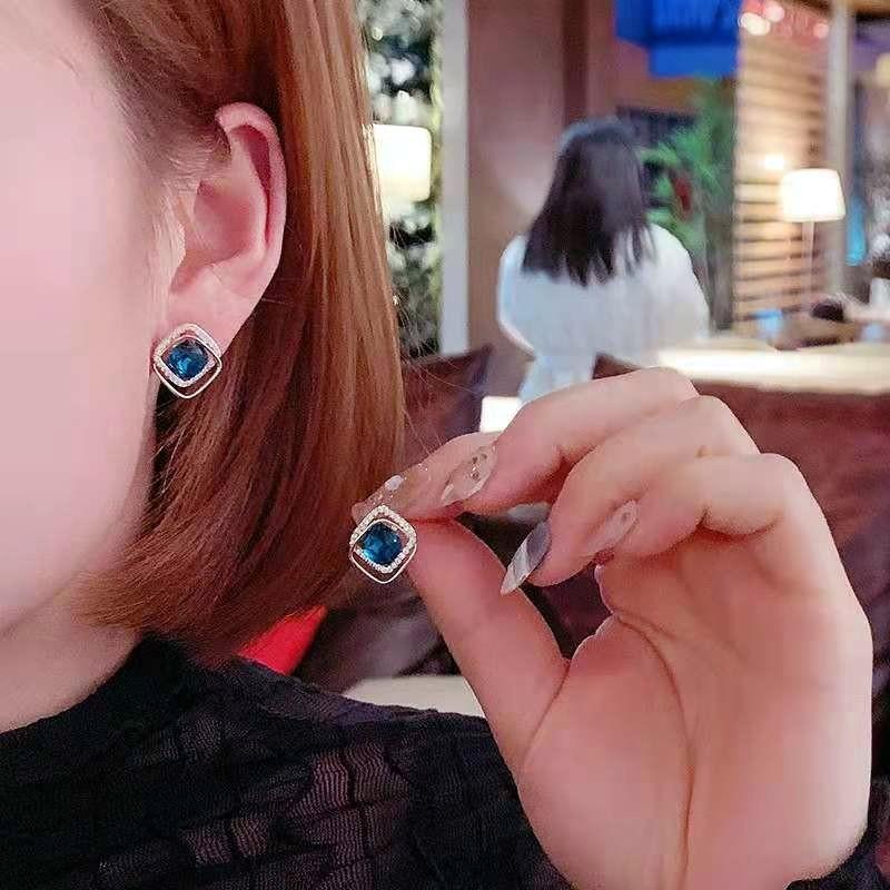 Dongdaemun da Coreia do Sul Simples Requintado Super Fada Pequena Orelha Studs High-end Brincos de Cristal Azul Elegante All-match Ear Acessórios