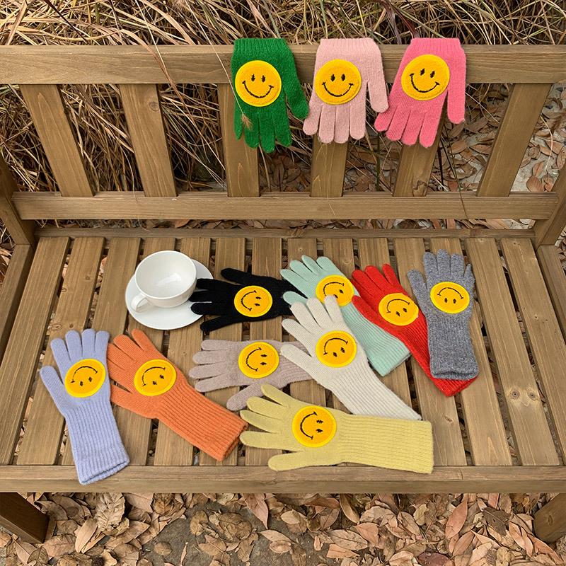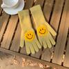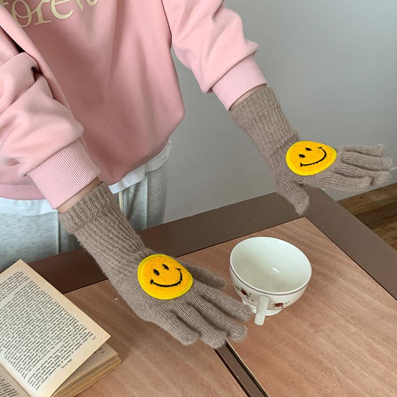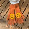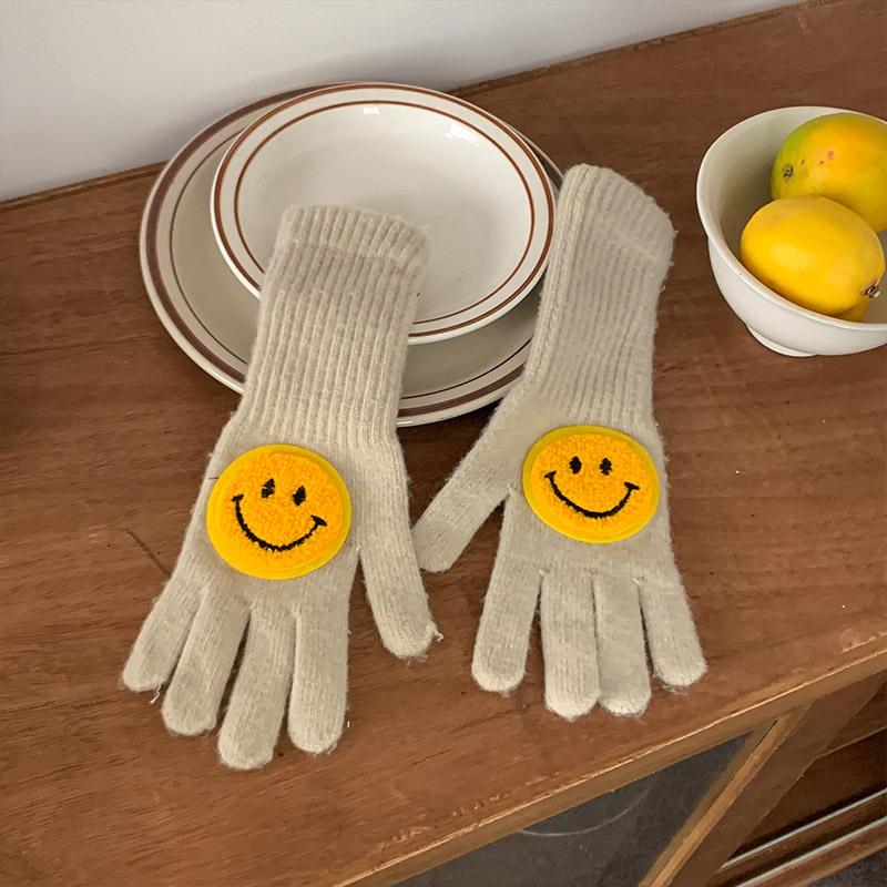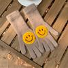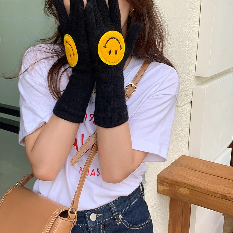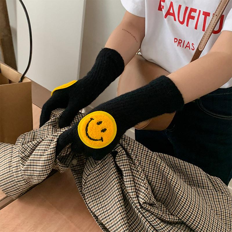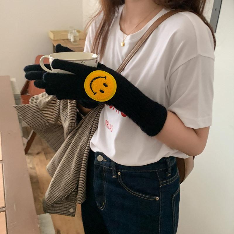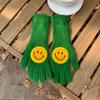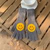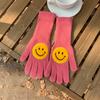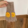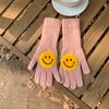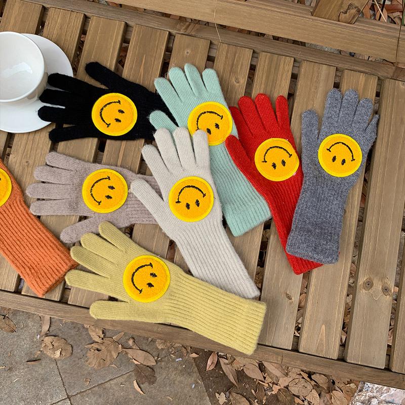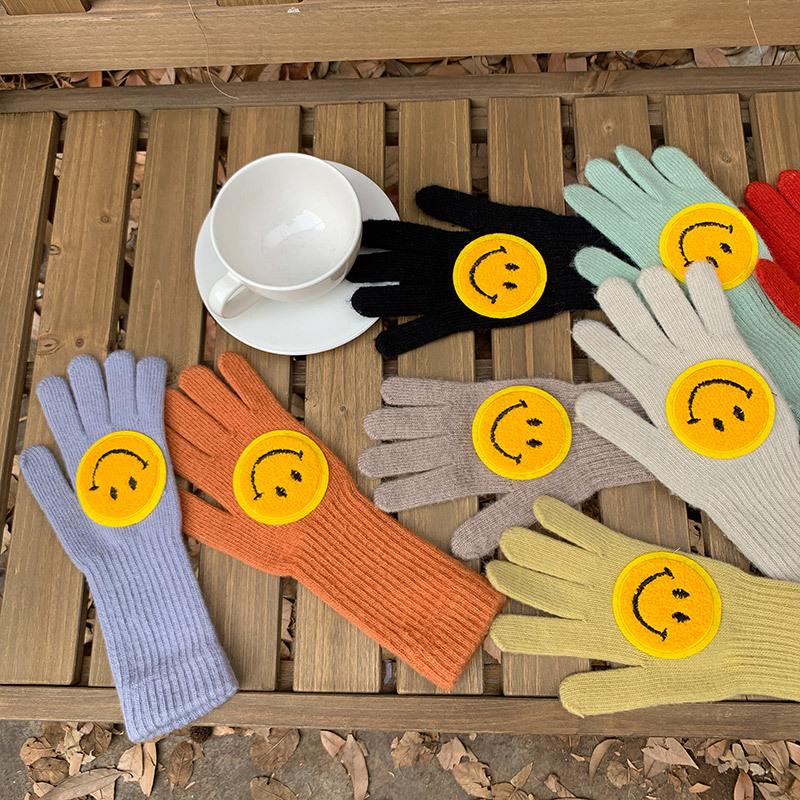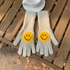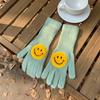 Estilo coreano rosto sorridente bonito rotulagem de lã luvas de malha outono e inverno das mulheres engrossado quente proteção de pulso dedo luvas longas