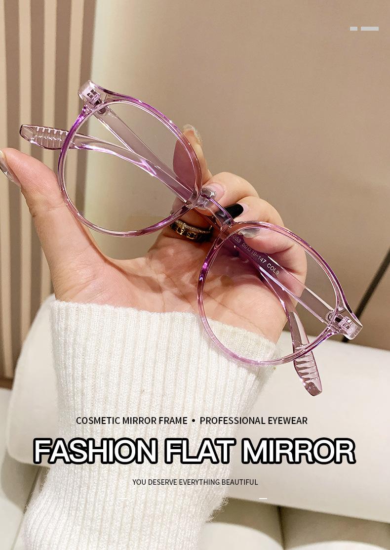 Material do PC anti-luz azul rosto liso emagrecimento óculos simples mulheres retro all-match internet celebridade mesma armação de óculos com miopia