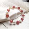 Pulseira de Pérola de Água Doce com Costura de Cristal Morango Pulseira com Senso de Design para Estudante Namorada Estilo Coreano Simples Popular na Internet Joia para Namorada