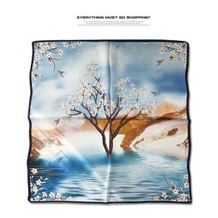 | |  | | | | Hangzhou seda azul paisagem primavera cachecol senhoras seda cachecol pequeno quadrado seda estilo chinês cachecol | | | | | |