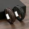 Pulseiras Simples e de Aço Inoxidável de Alta Qualidade Transfronteiriças para Homens, Pulseiras de Couro Tecidas à Mão, Fivelas Magnéticas para Mulheres, Fabricantes