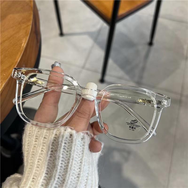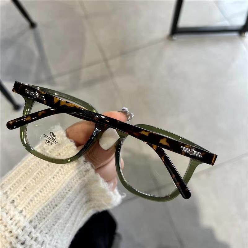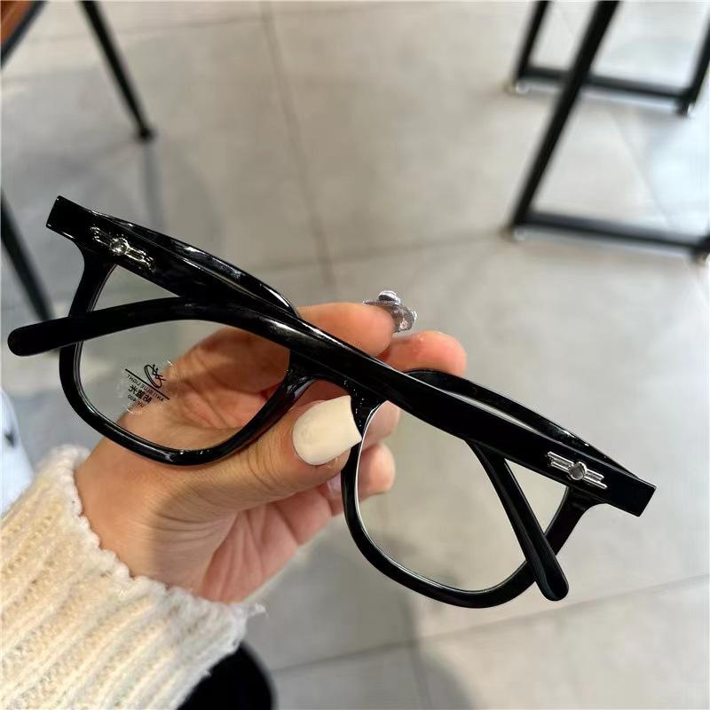 Óculos de miopia retrô pretos com armação grande, anti-luz azul, coreano, moderno, simples, estiloso, plano, para homens