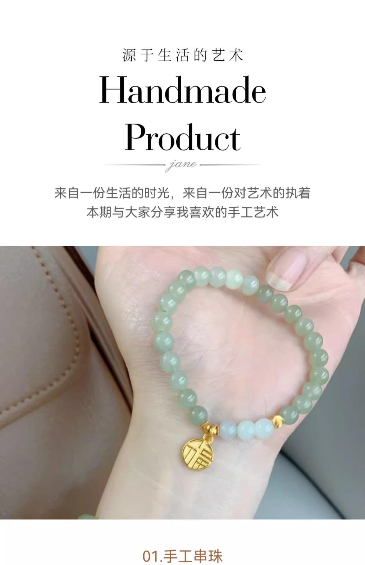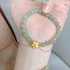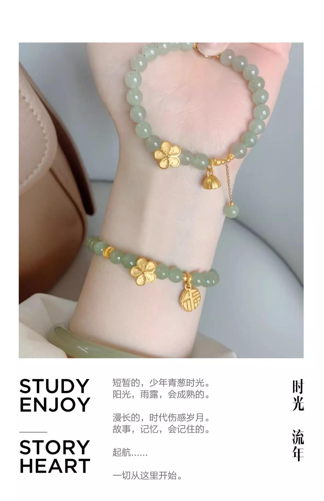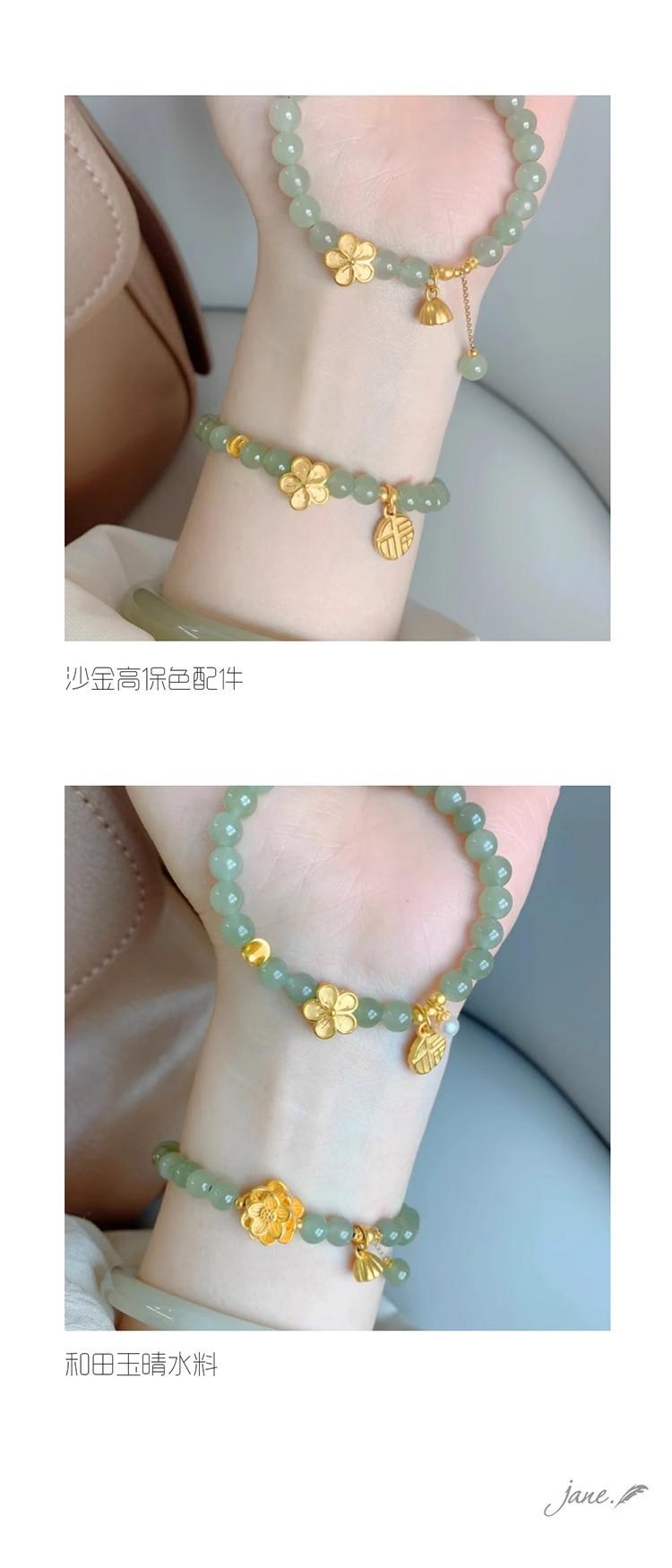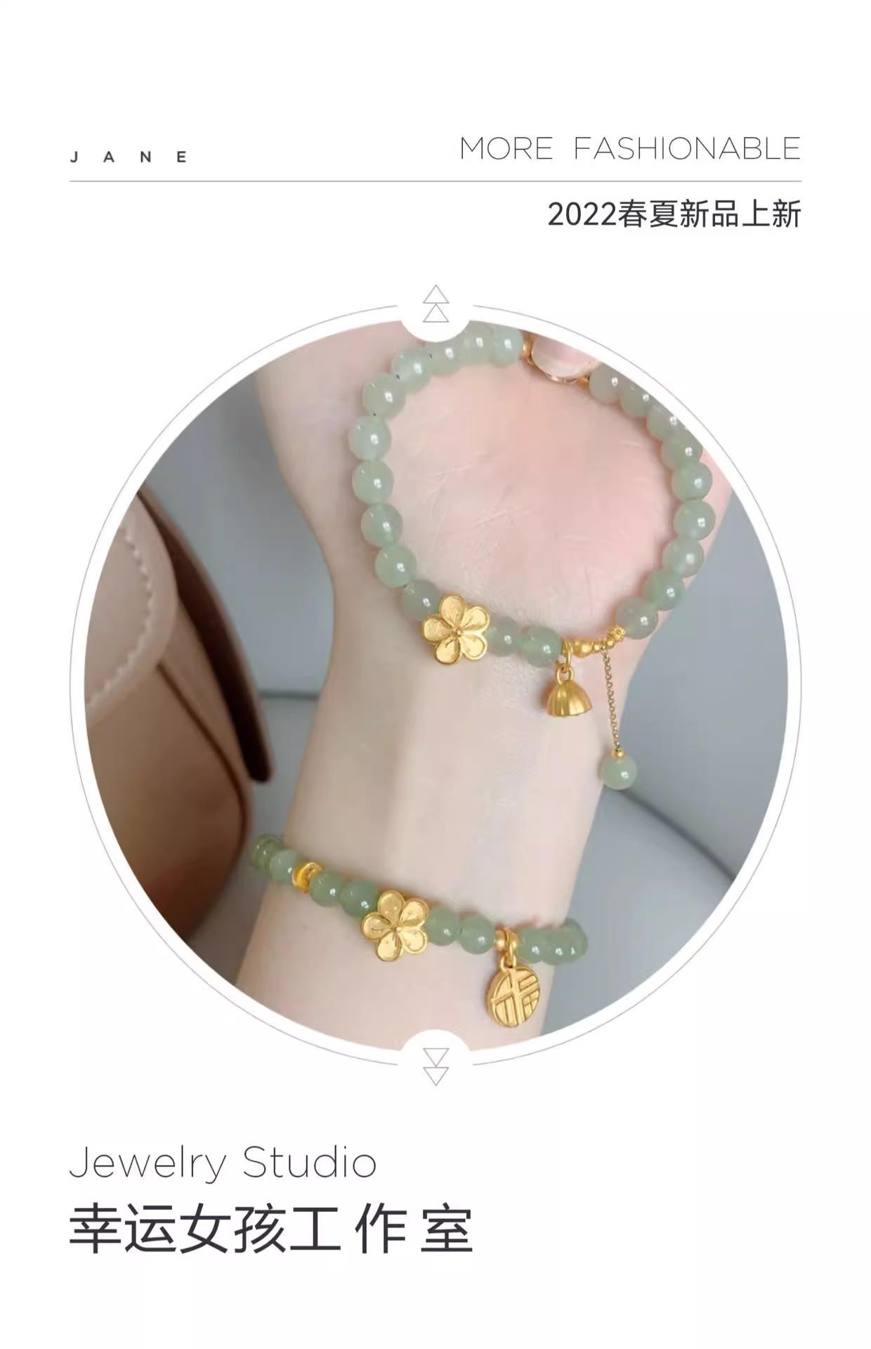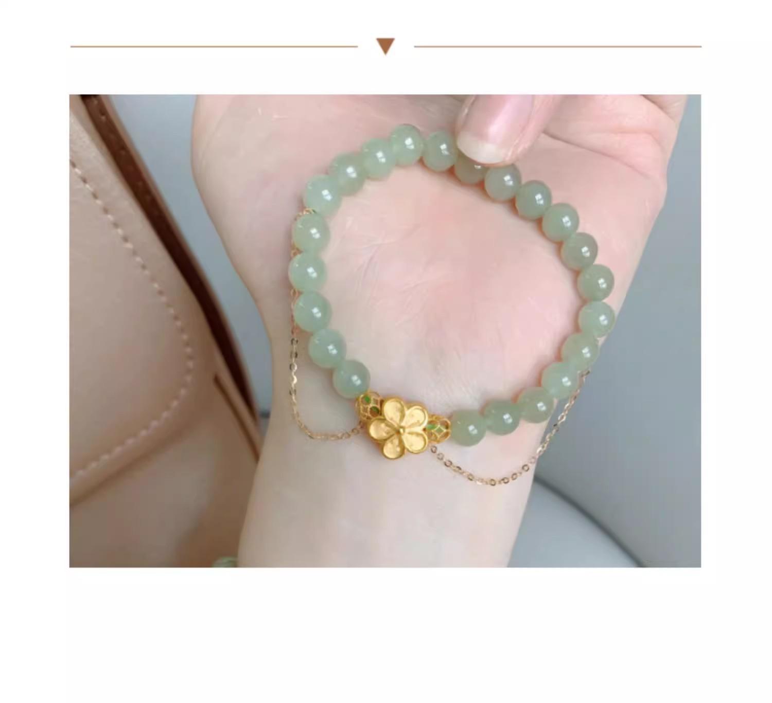 Pulseira Flor de Pêssego Queimando Natural Água Ensolarada Jade Hetian Pulseira Feminina Conta Redonda 6mm Maré Nacional Ins Design de Nicho