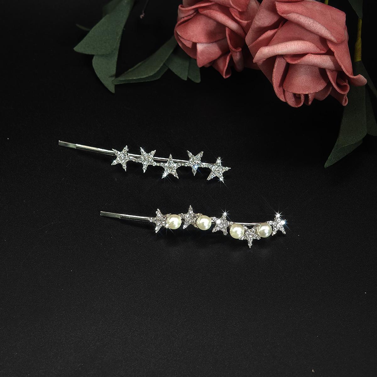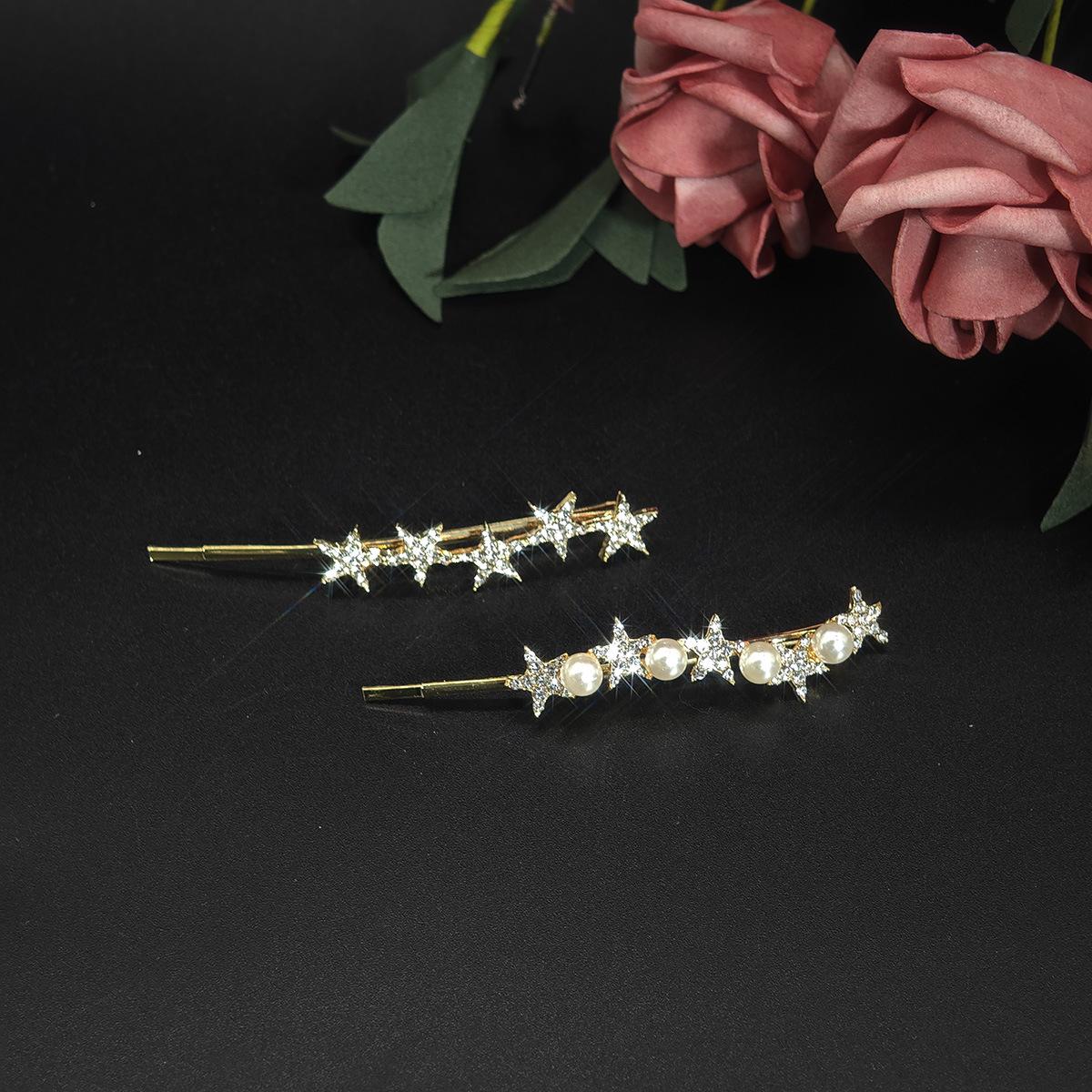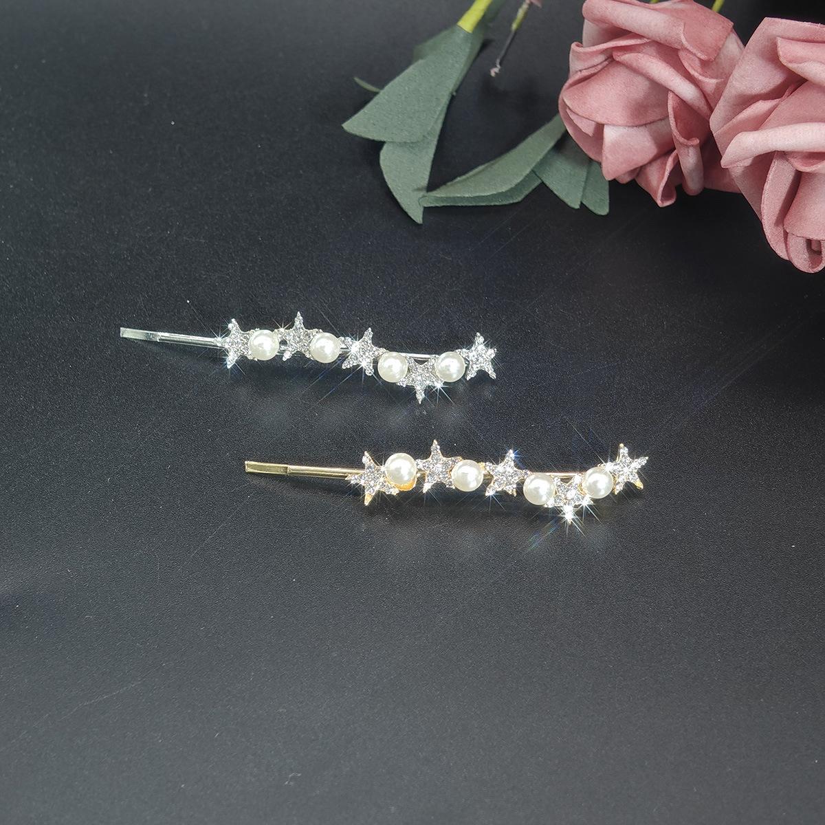 Grampo de cabelo com franja lateral em forma de estrela de pérola, grampo para trás na cabeça, acessório de cabeça com incrustações para combinar com todas as celebridades da internet, grampo de cabelo para mulheres