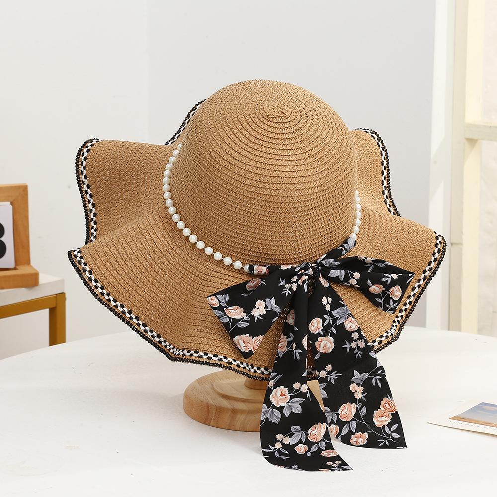Nova Grande Aba Arco Chapéu de Sol Mulheres Viagem Ao Ar Livre Férias Chapéu de Palha Borla Fita Protetor Solar Chapéu Fábrica