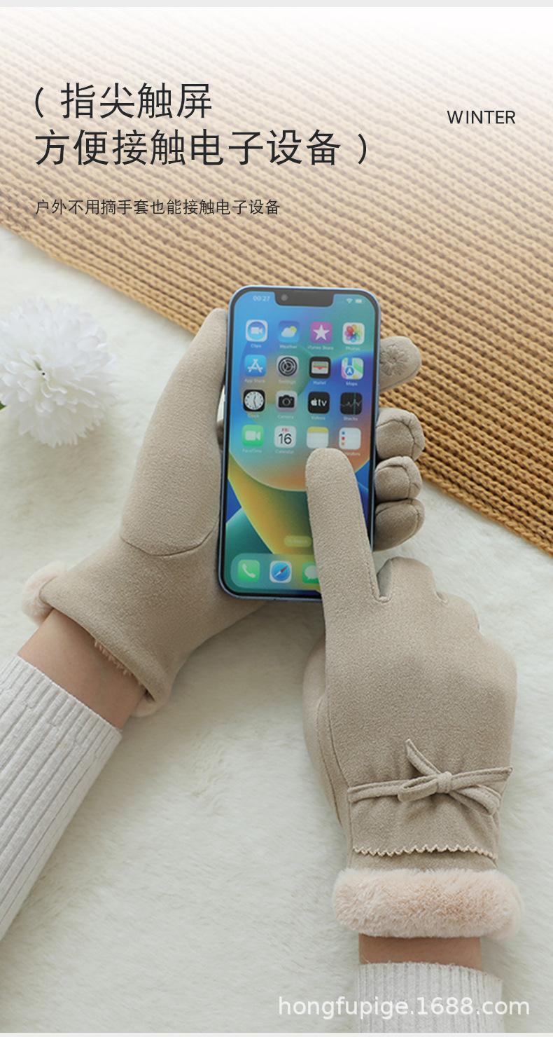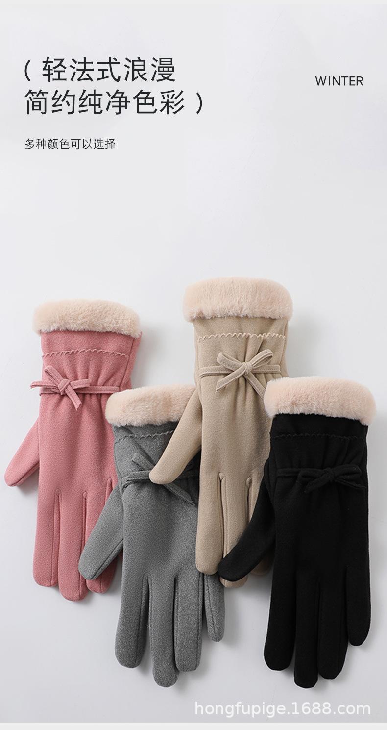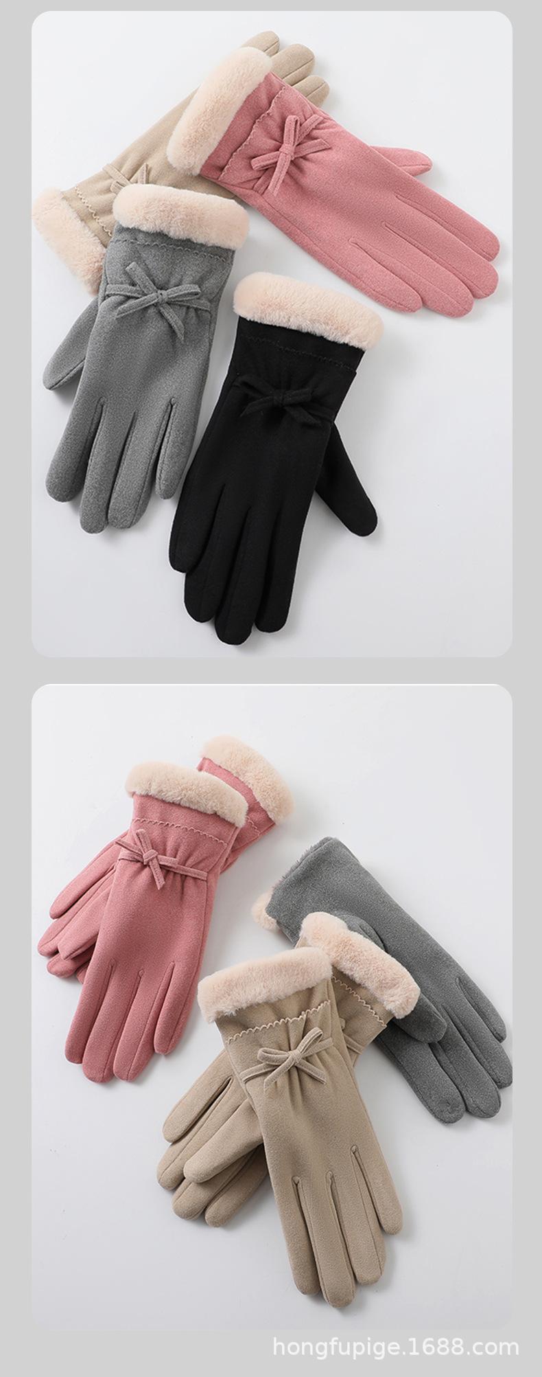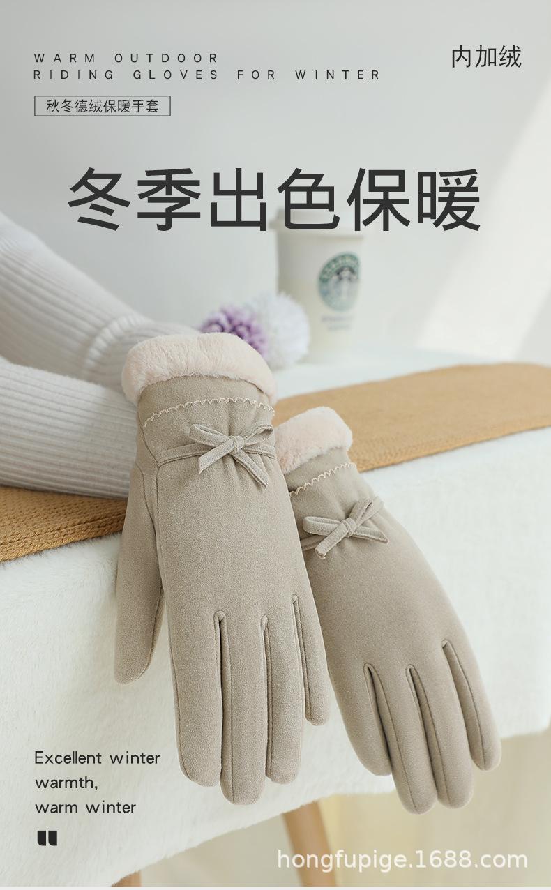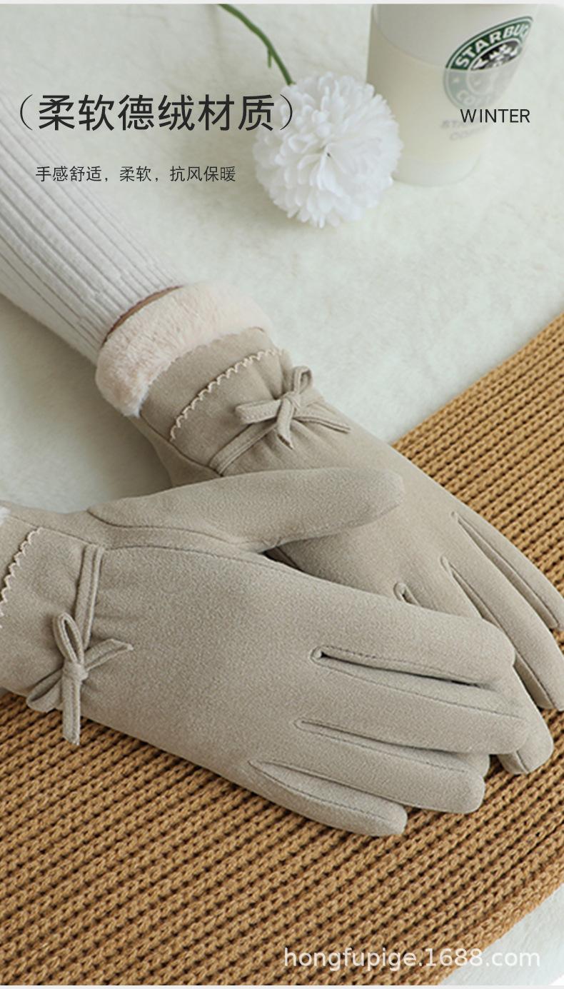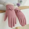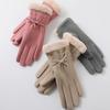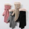Luvas quentes outono e inverno feminino veludo arco ao ar livre equitação condução forrado de lã espessa à prova de frio luvas de tela sensível ao toque