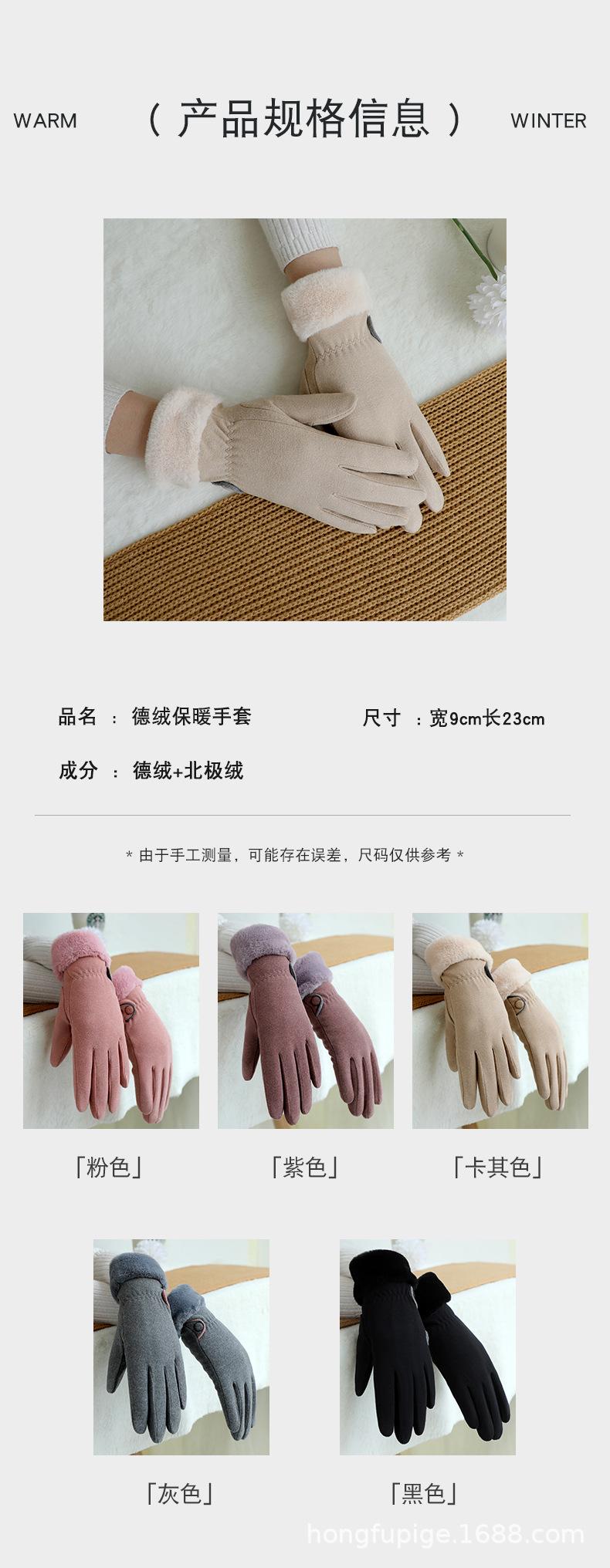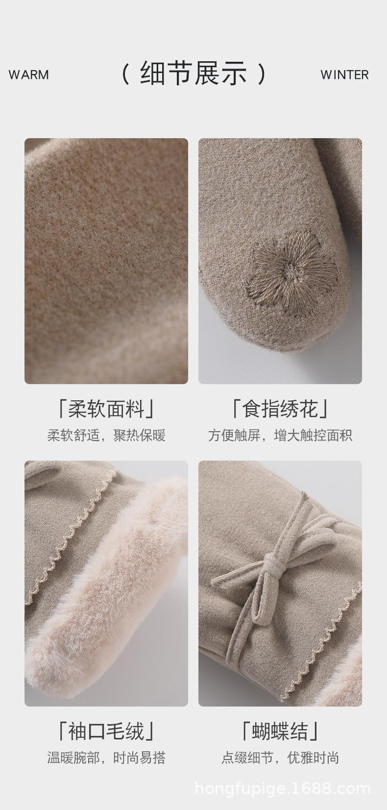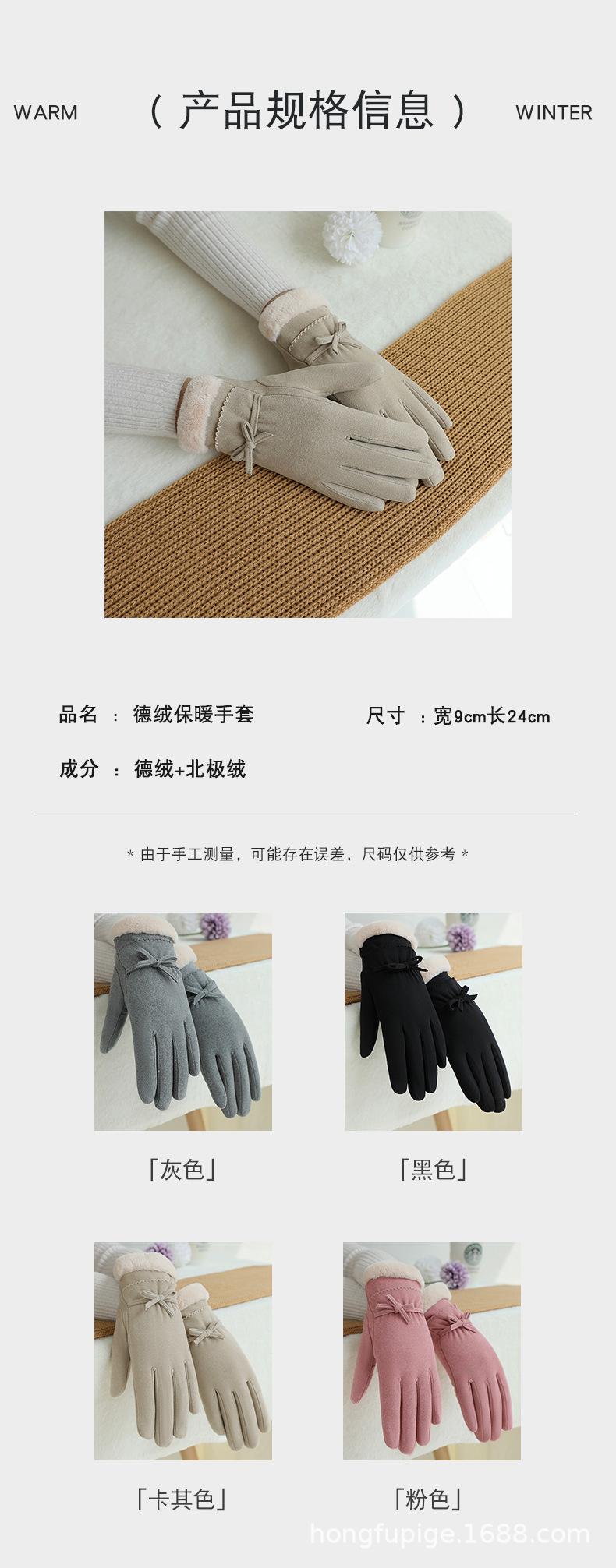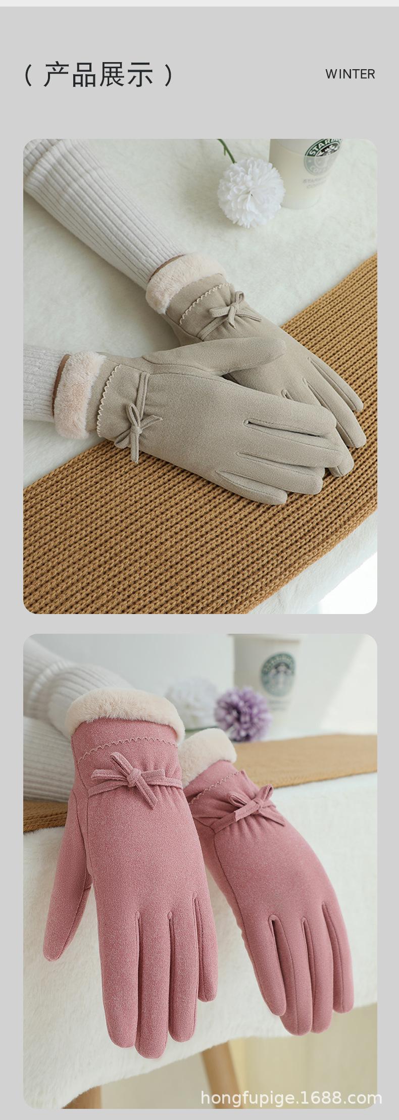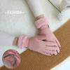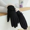 Luvas quentes outono e inverno feminino veludo arco ao ar livre equitação condução forrado de lã espessa à prova de frio luvas de tela sensível ao toque