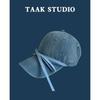 Lavado denim ins arco cinta boné de beisebol para as mulheres primavera e verão doce bonito japonês proteção solar boné repicado