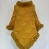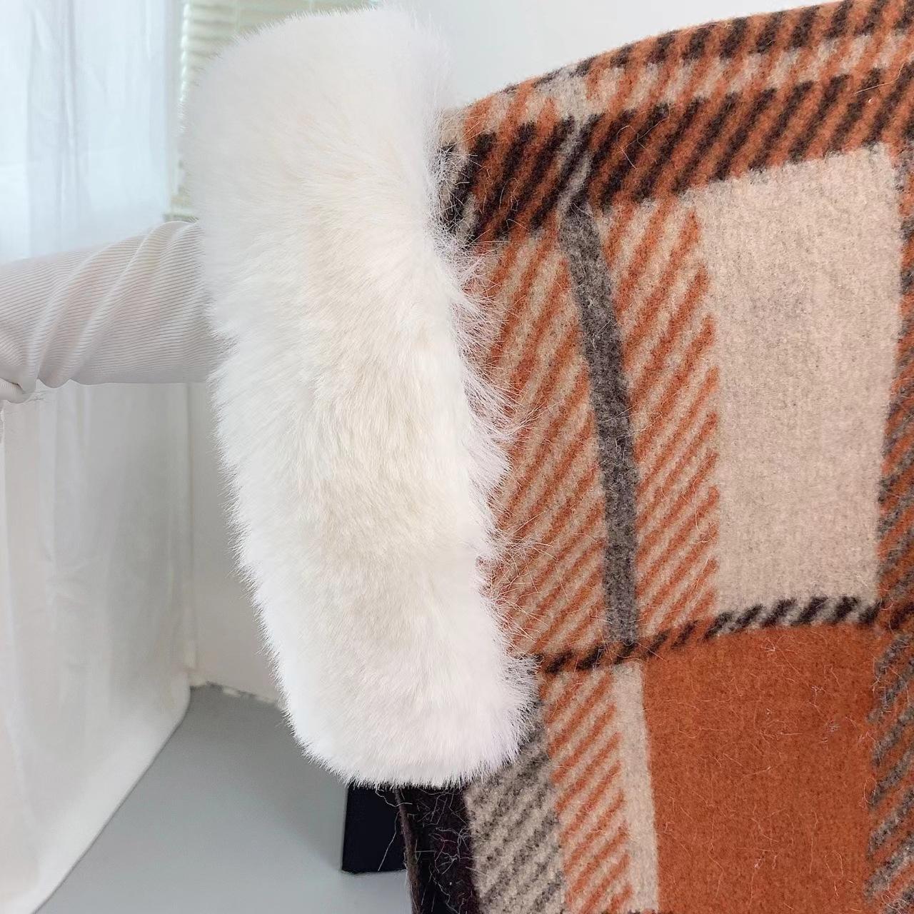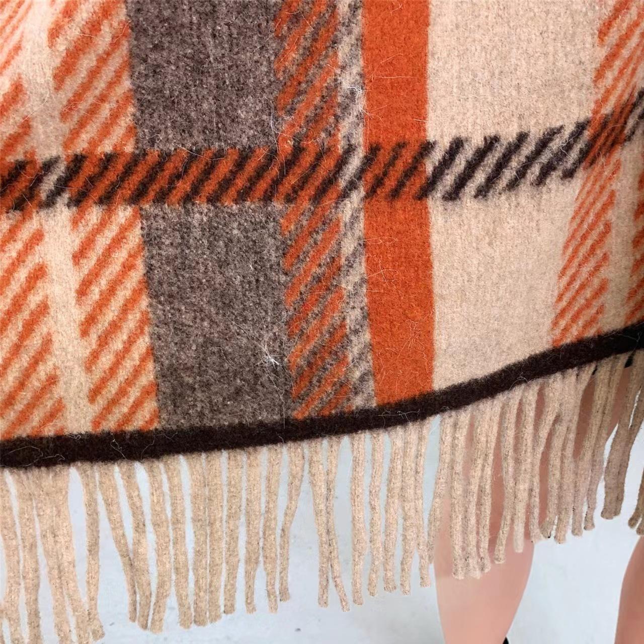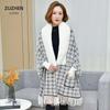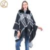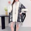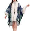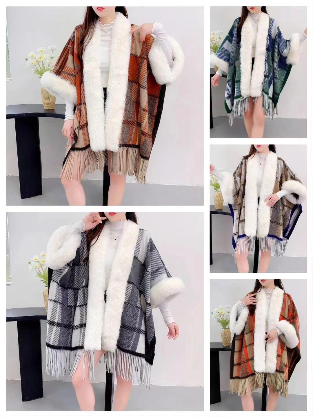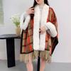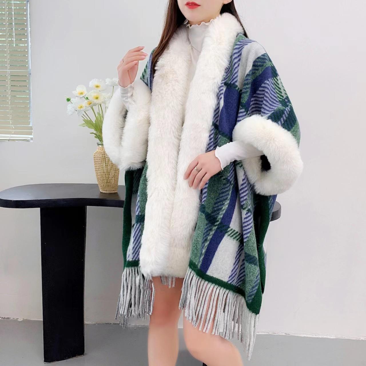 Novo casaco de malha xale feminino com gola de pele grande e espessado, quente e de alta qualidade, capa xadrez para outono e inverno